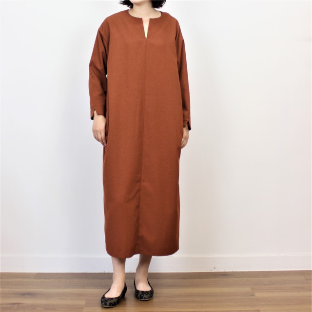 chez-voeu ラナテックツイルキーネックストレートワンピース