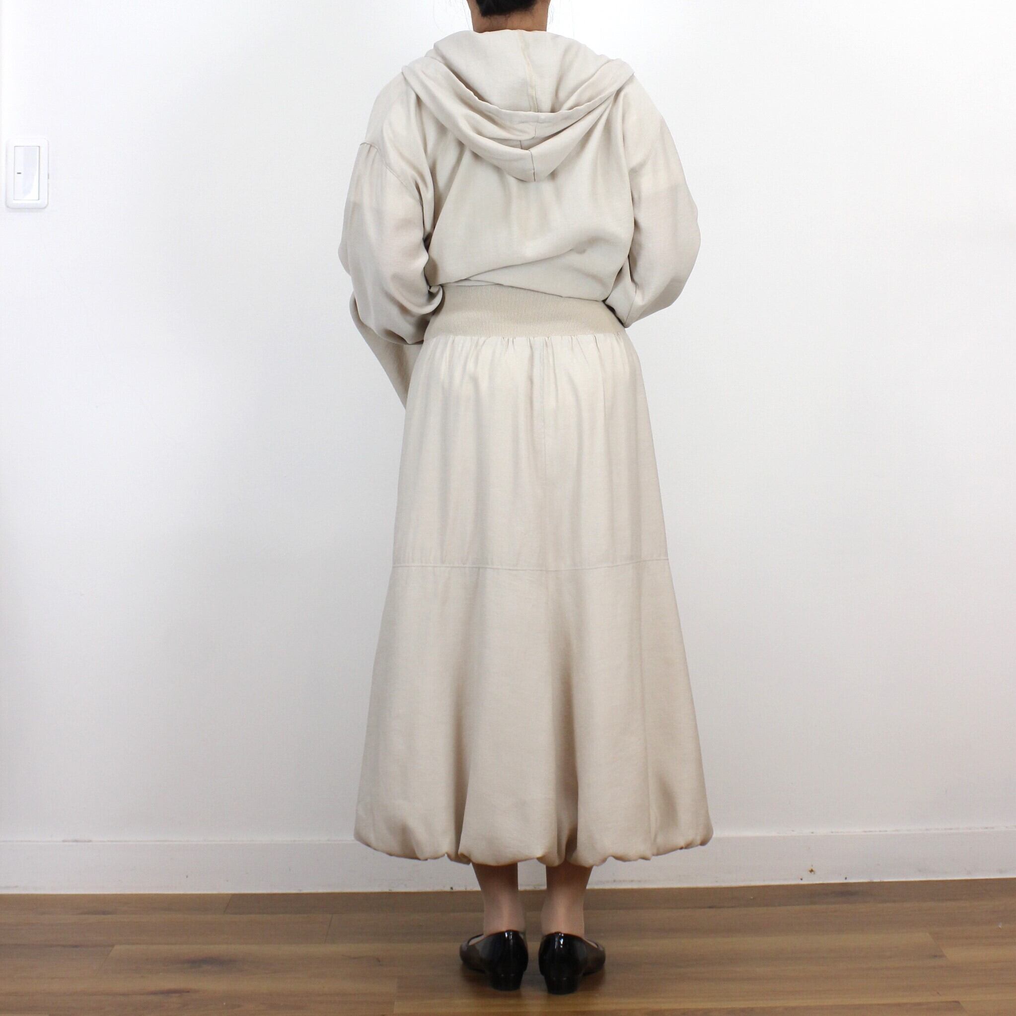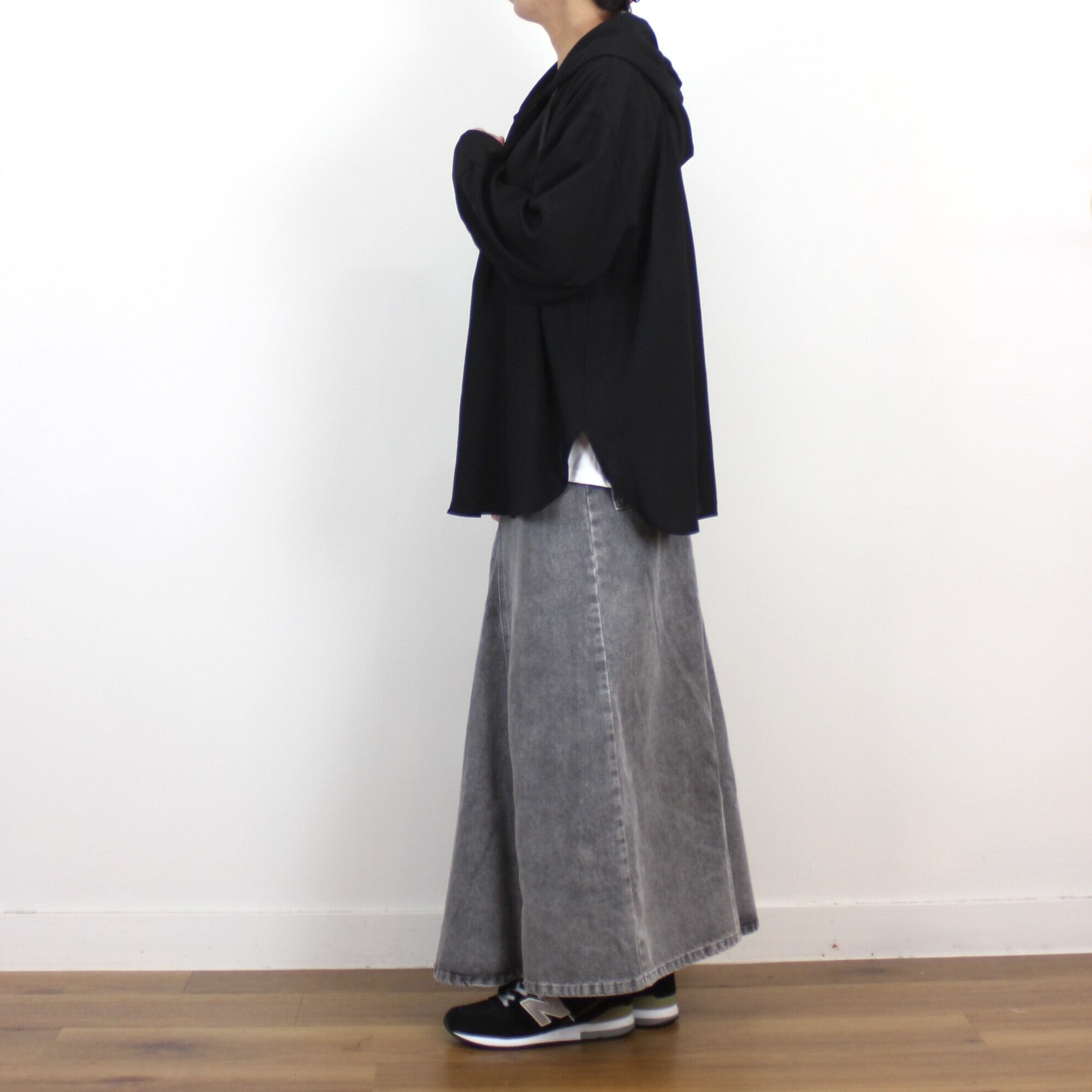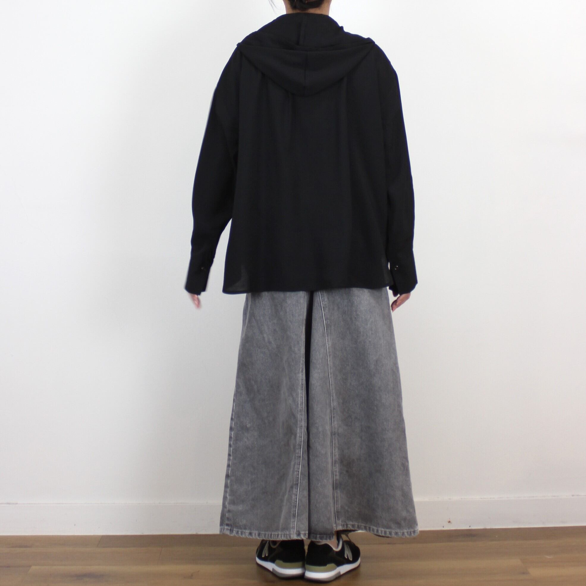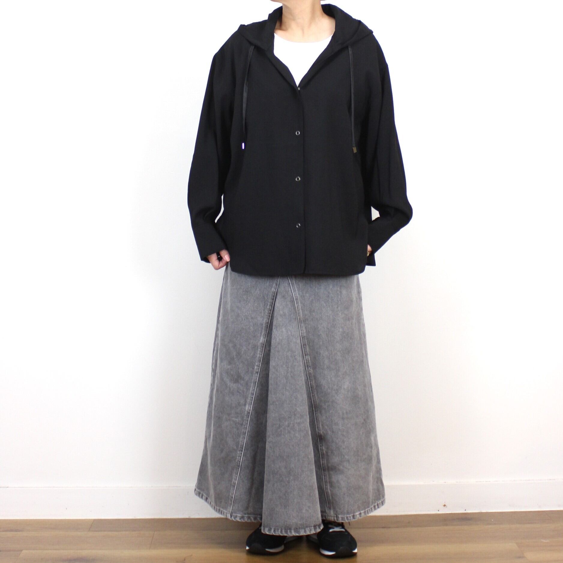 フードが付いていることで、首周りにアクセントを加えつつ、さらっとした雰囲気を演出します。デニムやスカートなど、幅広いボトムスとのコーディネートが楽しめるため、様々なシーンで活躍すること間違いなしです。このブラウスで、自分だけのスタイルを楽しんでみてはいかがでしょうか!