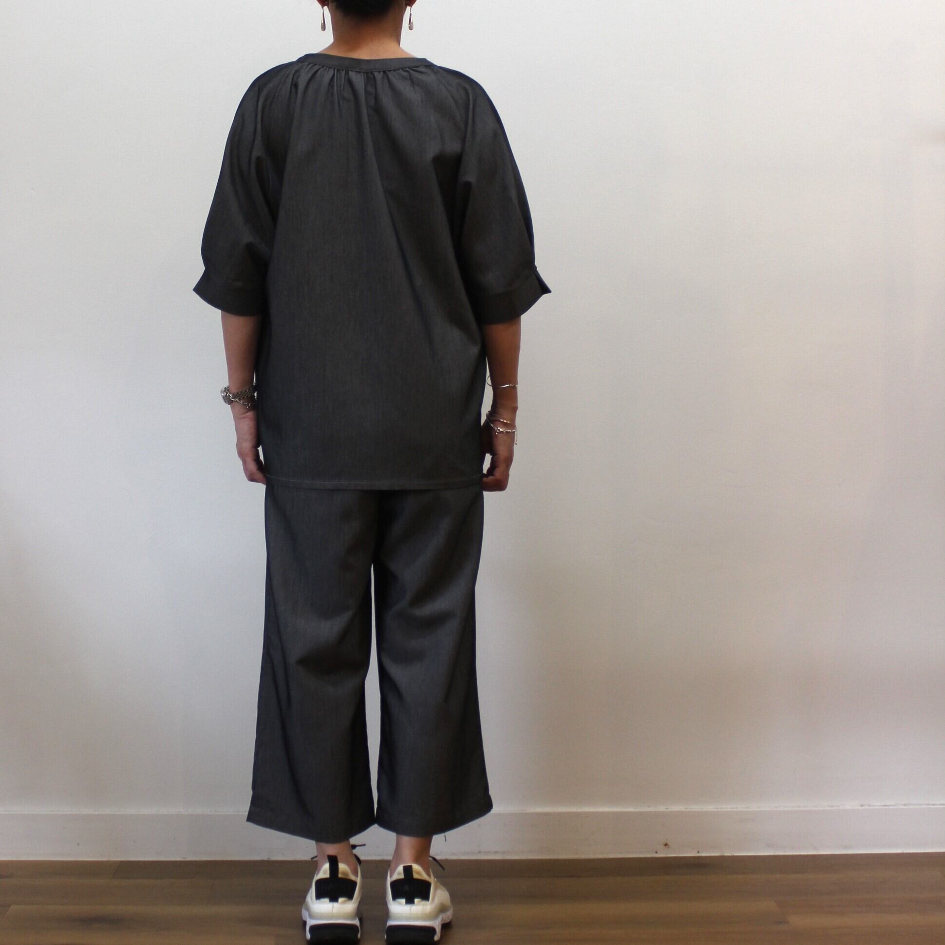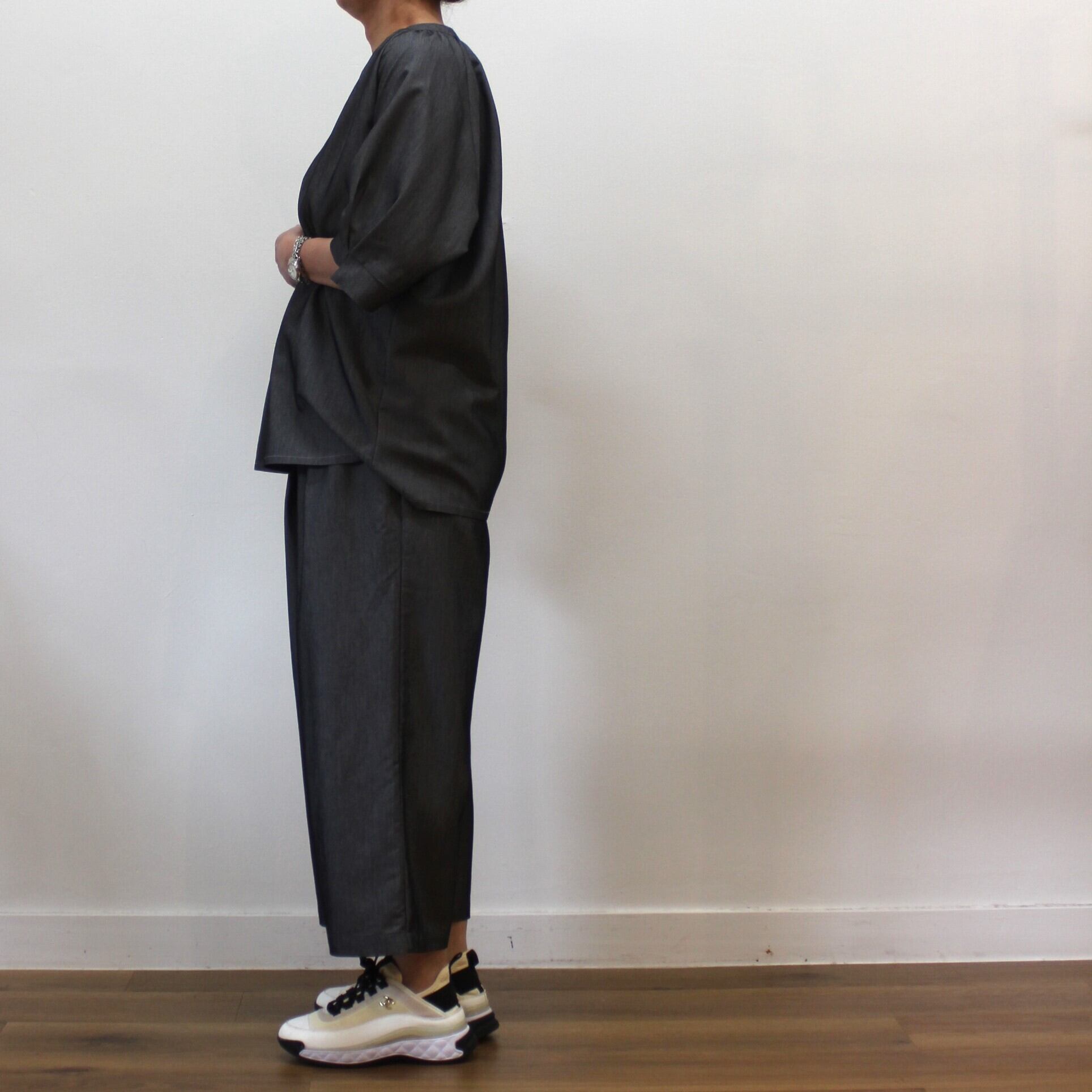 chez-voeu P/Rウェストギャザー九分丈パンツ