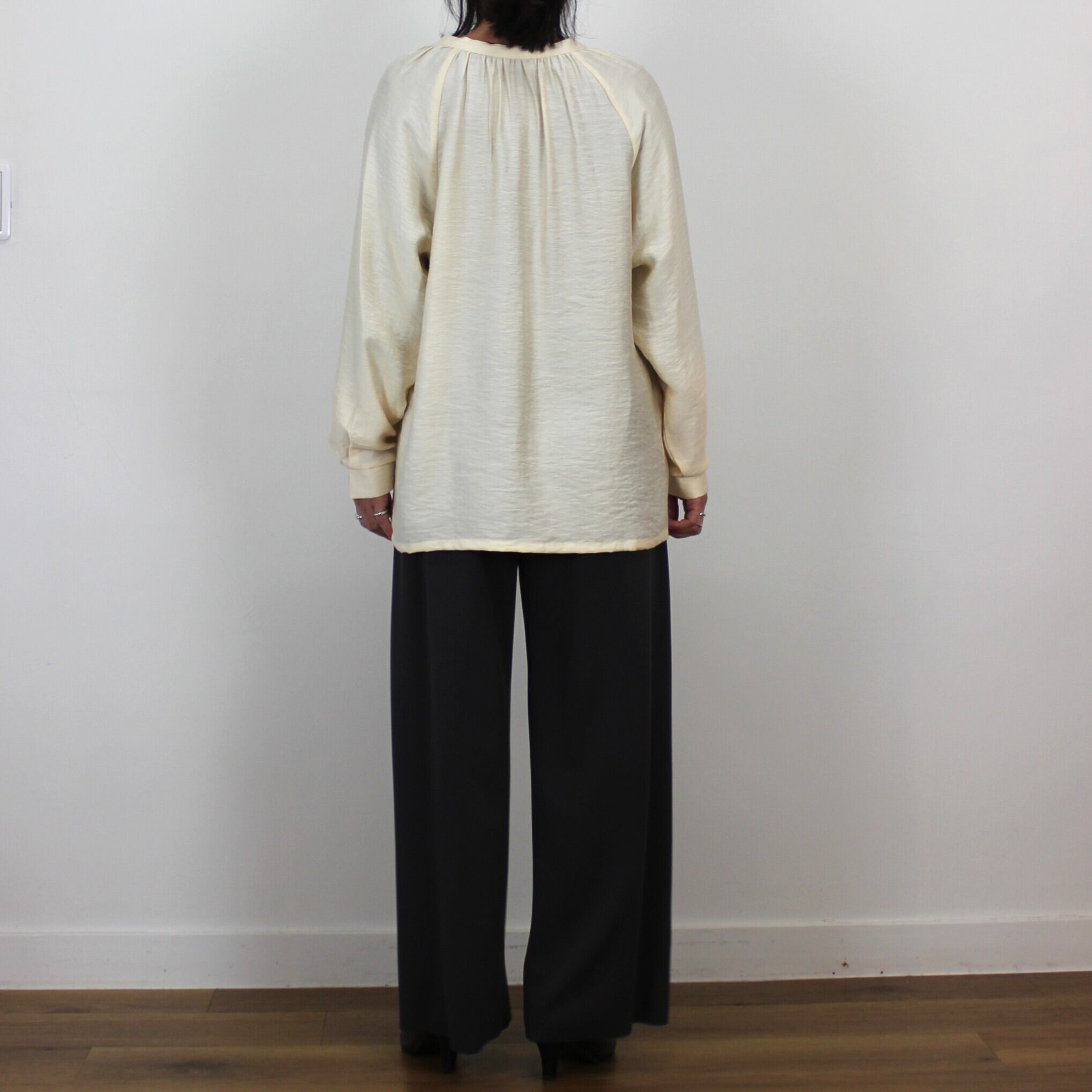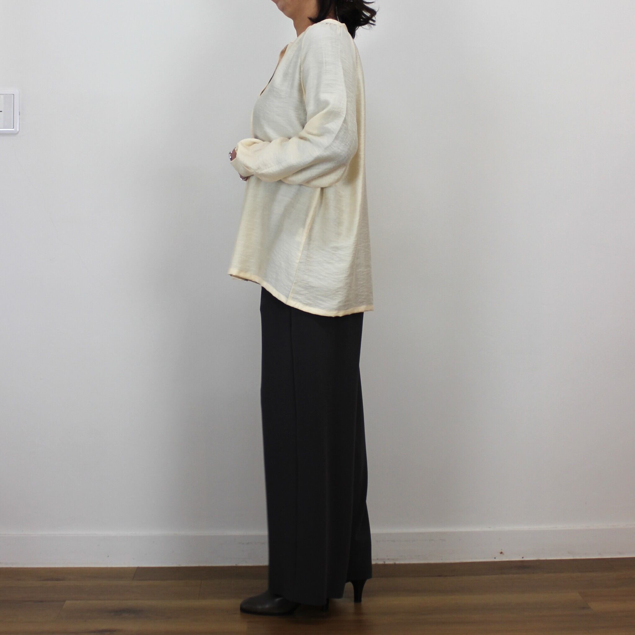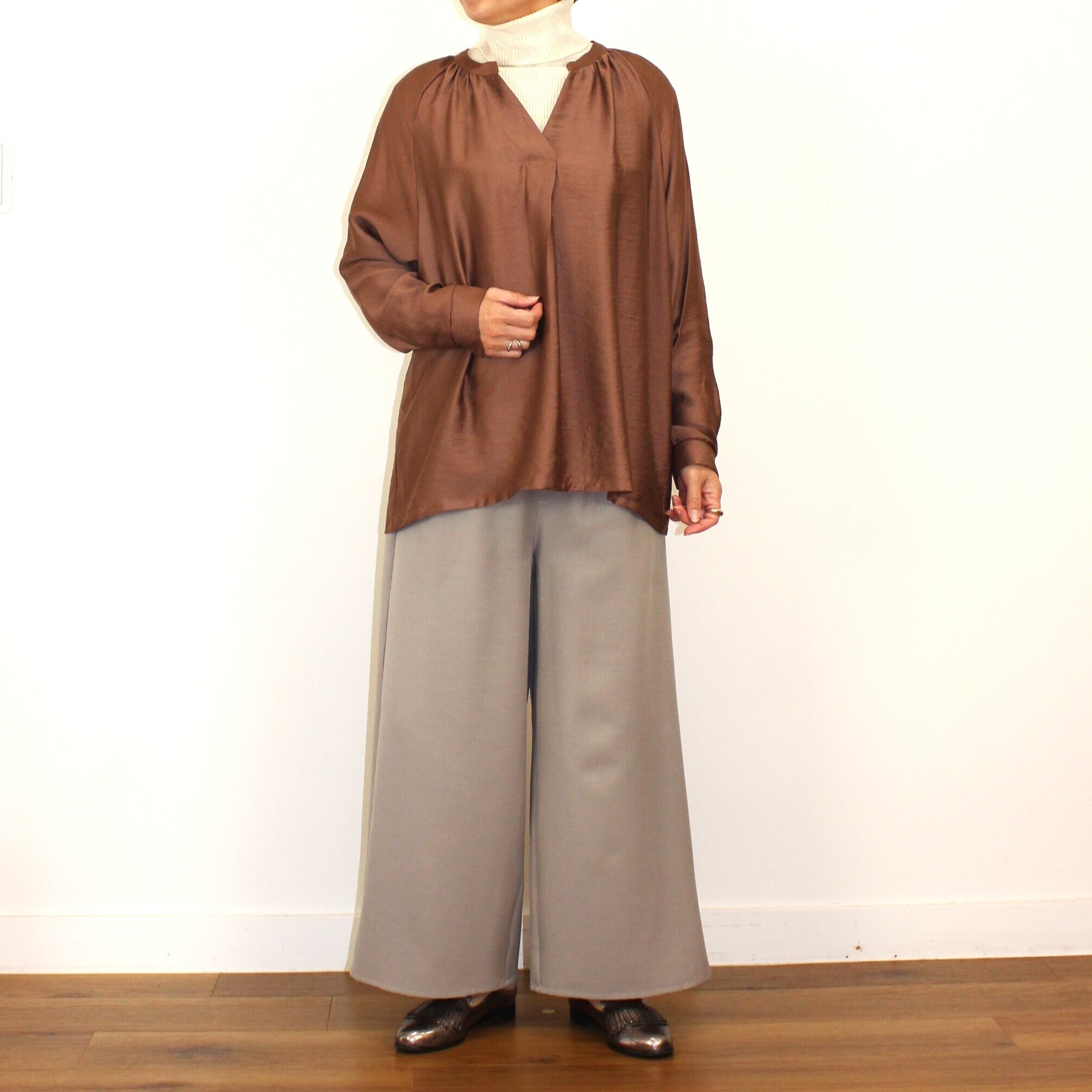 chez-voeu T/Rスキッパーブラウスは、普段使いから特別なシーンまで幅広く活躍する洗練されたデザインが特徴のアイテムです!柔らかなポリエステルとレーヨンの混紡素材が、しなやかな着心地を実現し、さらりとした肌触りが心地よさを提供します。