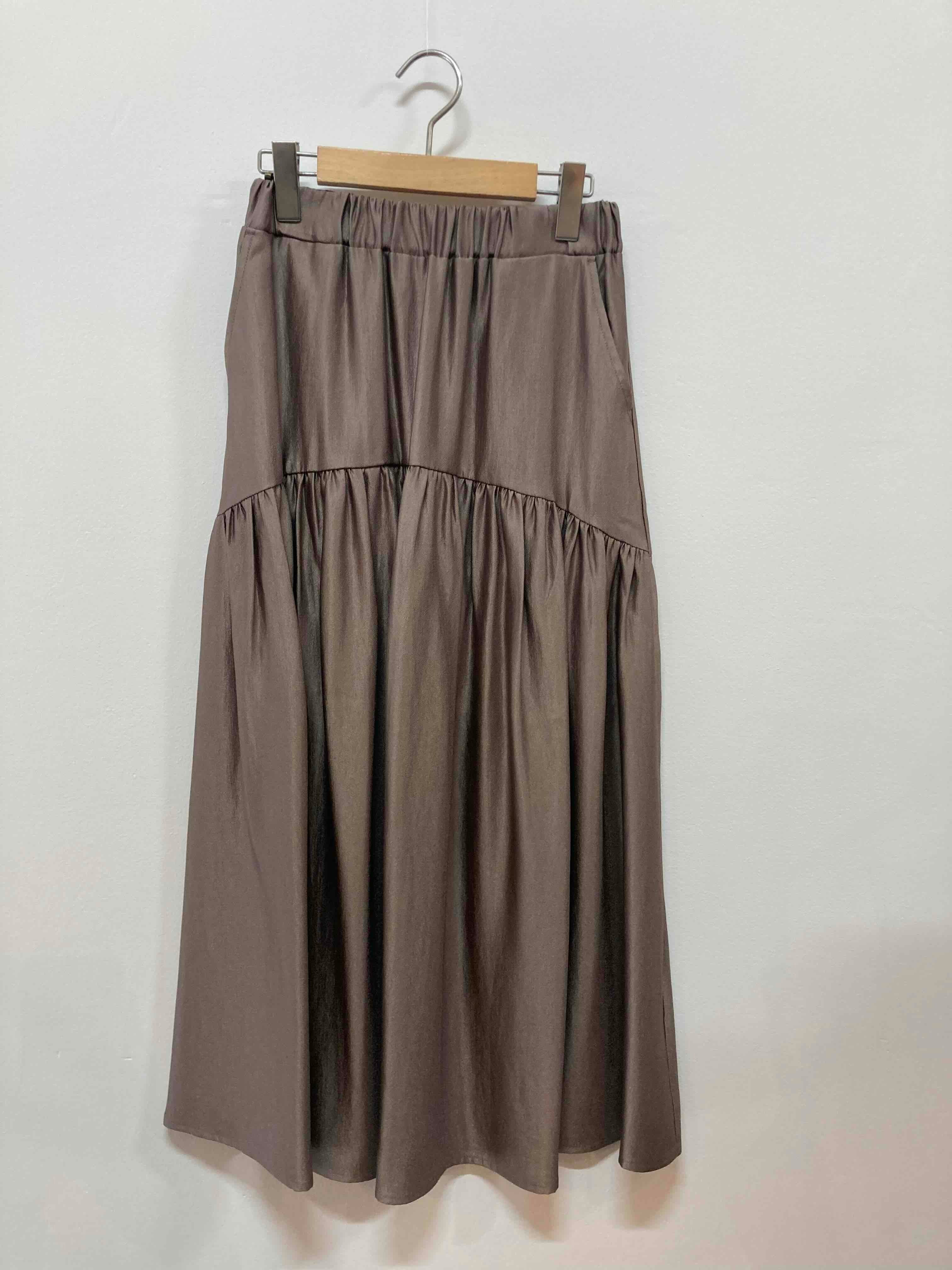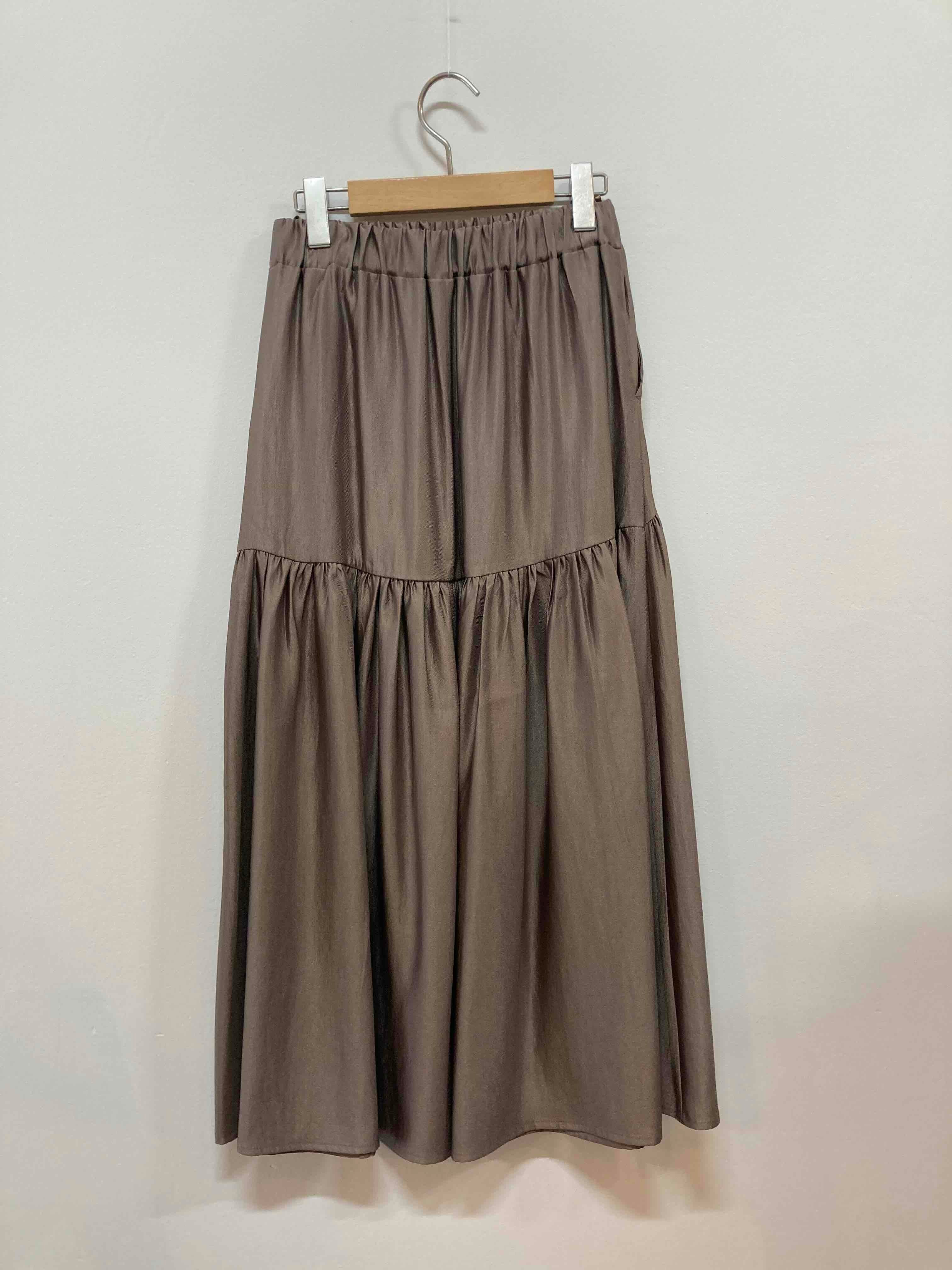 ウエストのギャザーが、柔らかなシルエットを演出し、女性らしい魅力を引き立てます。ティアードデザインで動くたびに美しいドレープが生まれ、見る人を惹きつけるスタイルを実現します。シンプルなトップスとも相性が良く、光沢があり華やかなシーンにも対応できる一着です。また、豊富なカラーバリエーションから、自分にぴったりのスタイルを見つけて、毎日のファッションをより楽しんでみませんか!