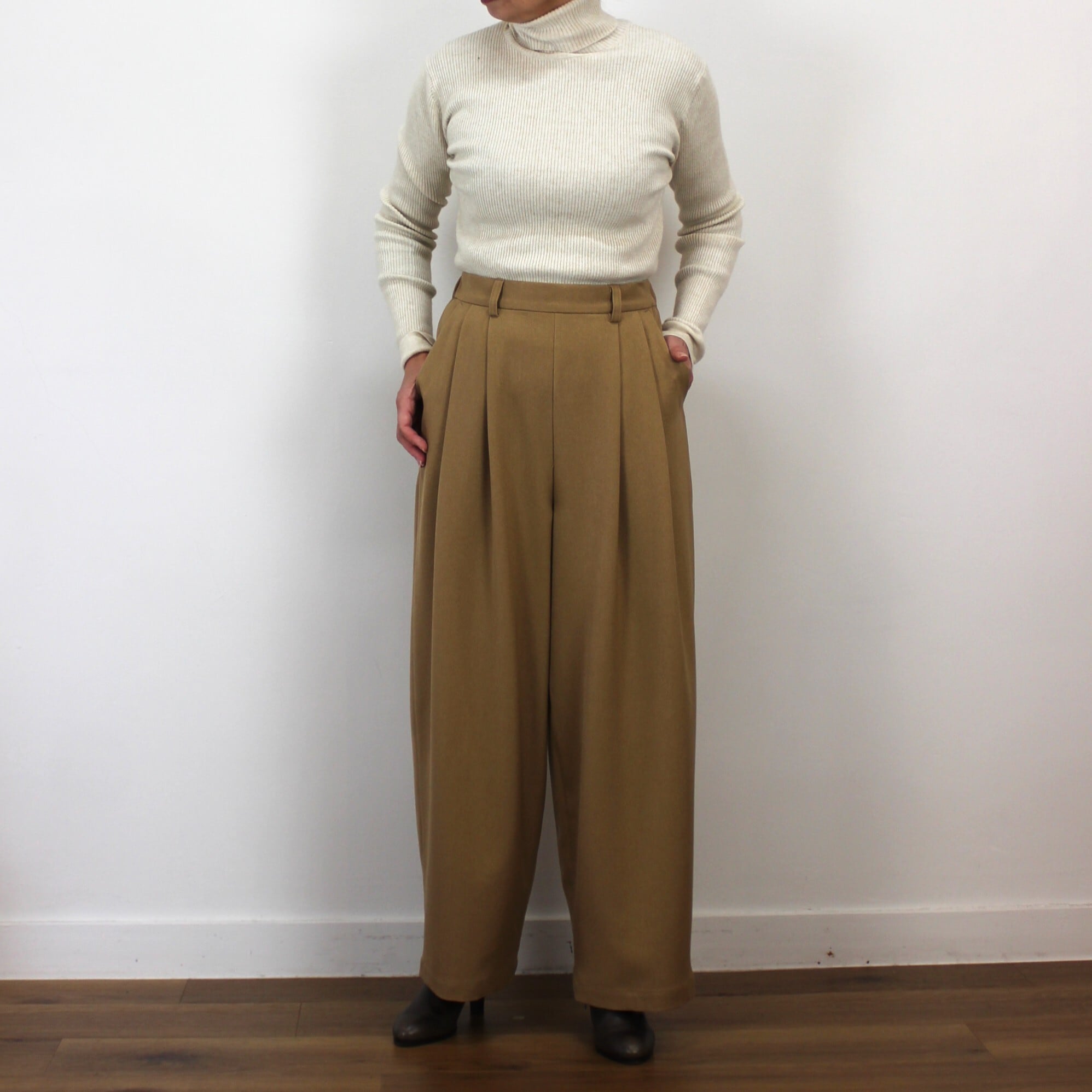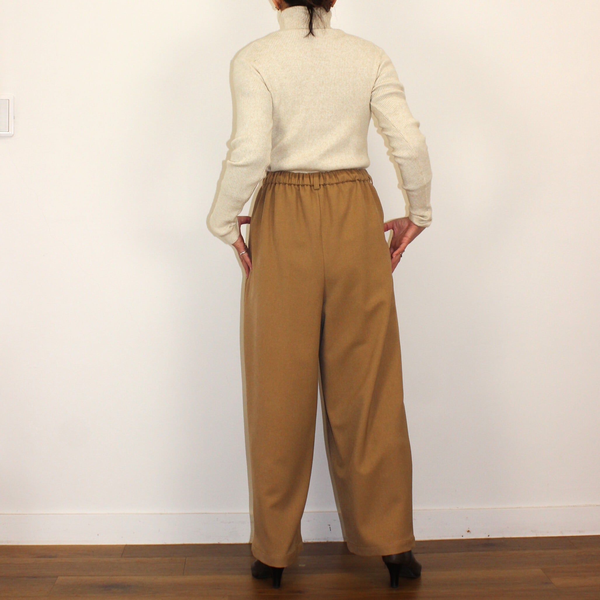 chez-voeu ウールライクポリエステルツイルワイドパンツ