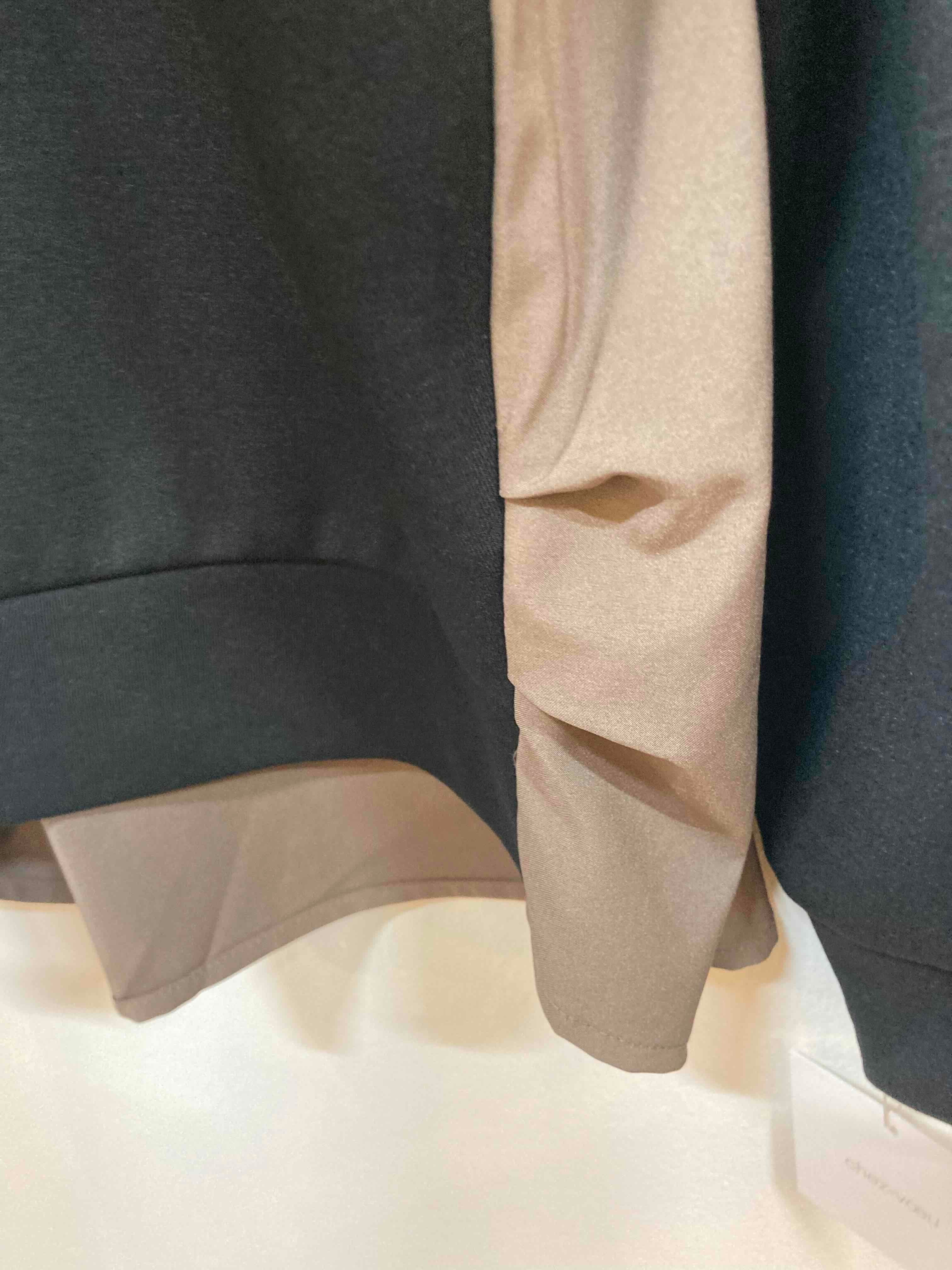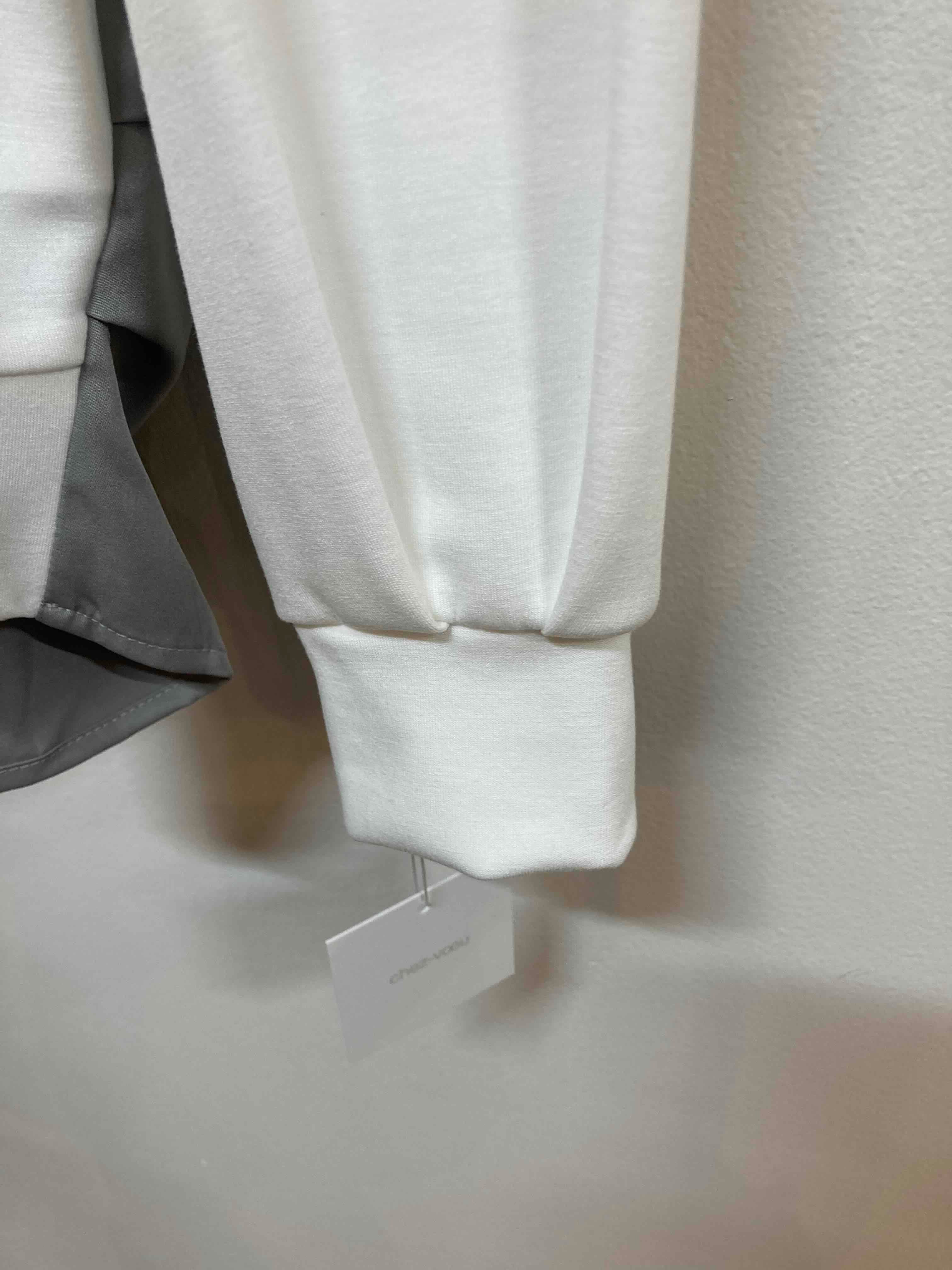 chez-voeu ドッキング配色プルオーバーは、スタイリッシュなデザインと快適な着心地が自慢のアイテムです!異なる素材を組み合わせたドッキングデザインが、シンプルなコーディネートに個性を加えてくれます。