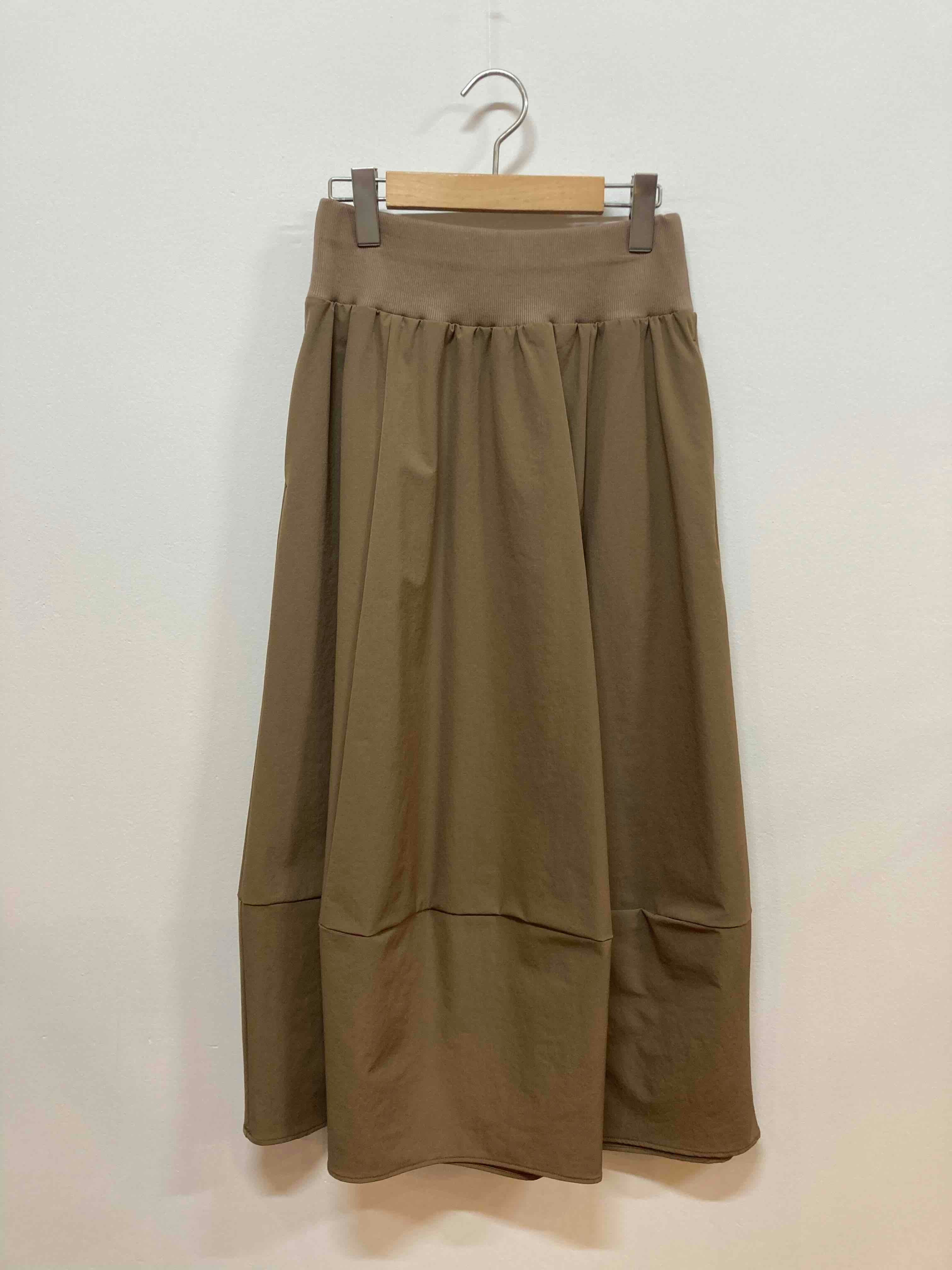 柔らかな素材感が快適な着心地を提供し、デイリーユースにぴったりです。また、裾の切り替えデザインがアクセントとなり、シンプルなコーディネートにも華やかさをプラスします。カジュアルからちょっとしたお出かけまで幅広く活躍するこのスカートを取り入れて、あなたのスタイルをもっと楽しんでみませんか!