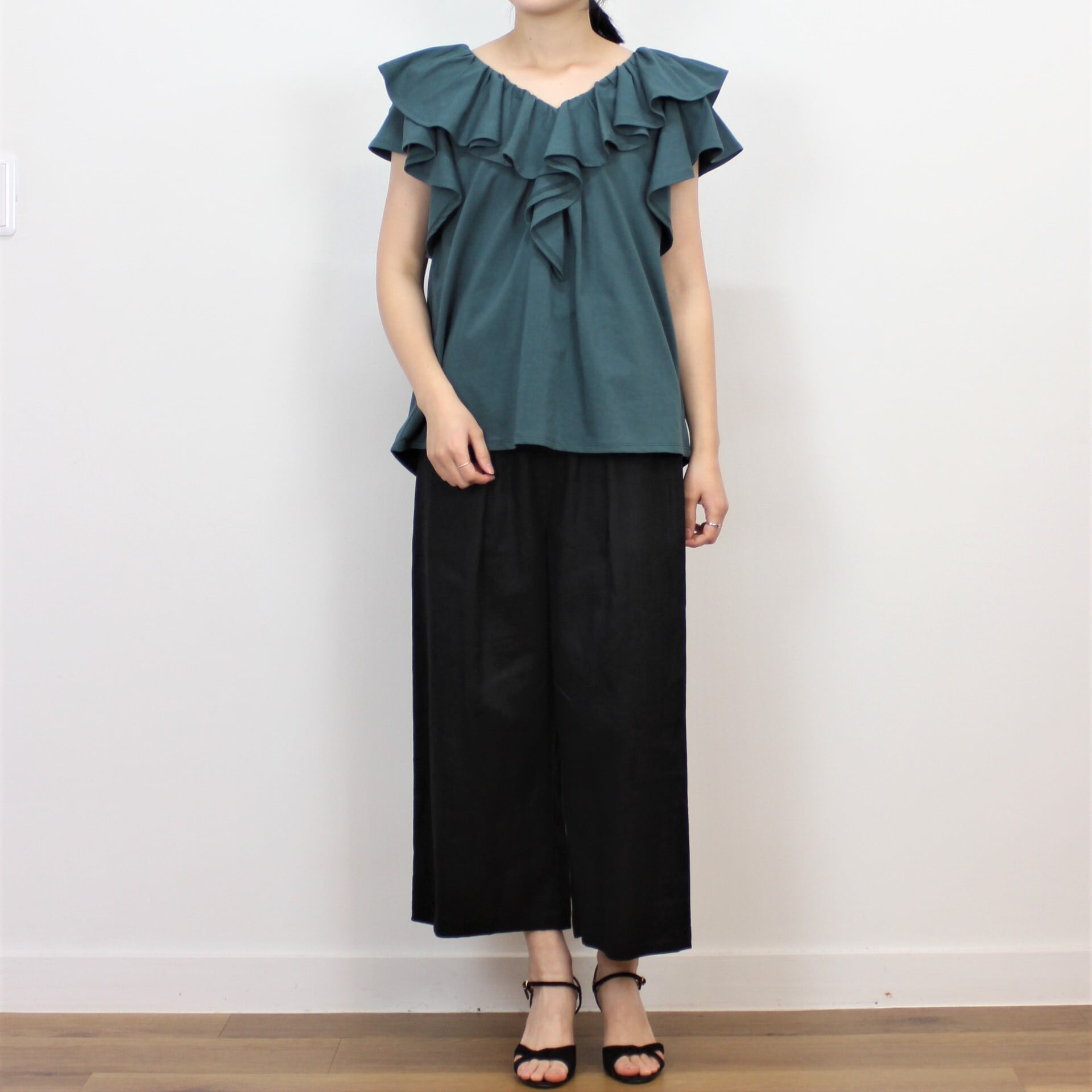 chez-voeu ウォッシャブルリネンタックワイドパンツ