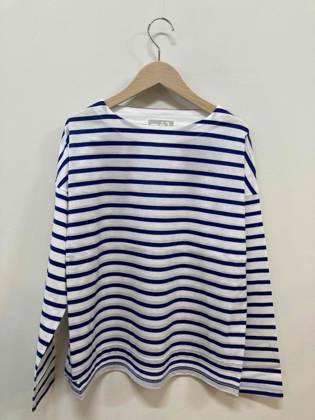 melaine シルケット天竺ボーダーボートネック長袖プルオーバー
