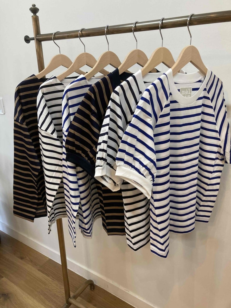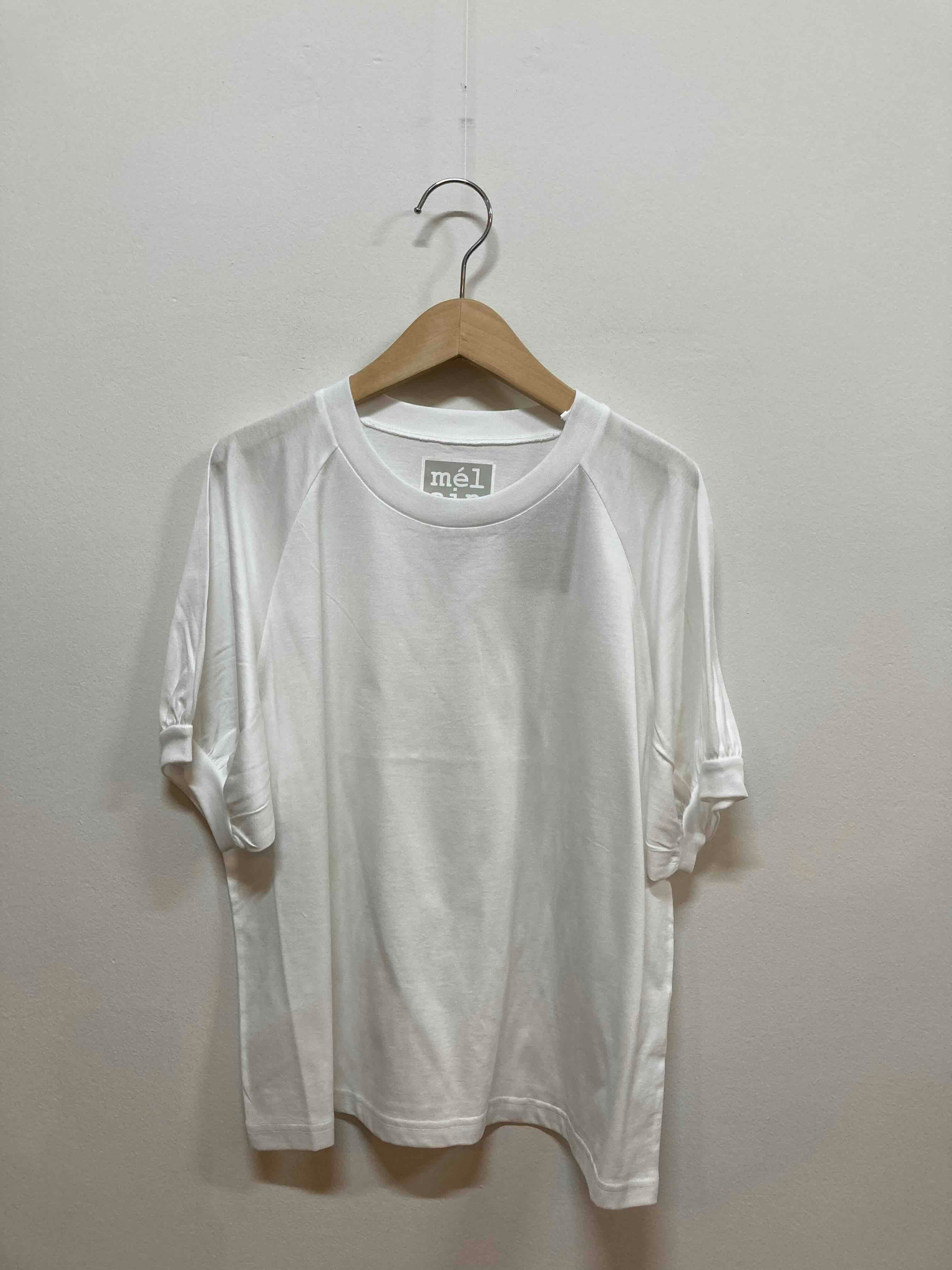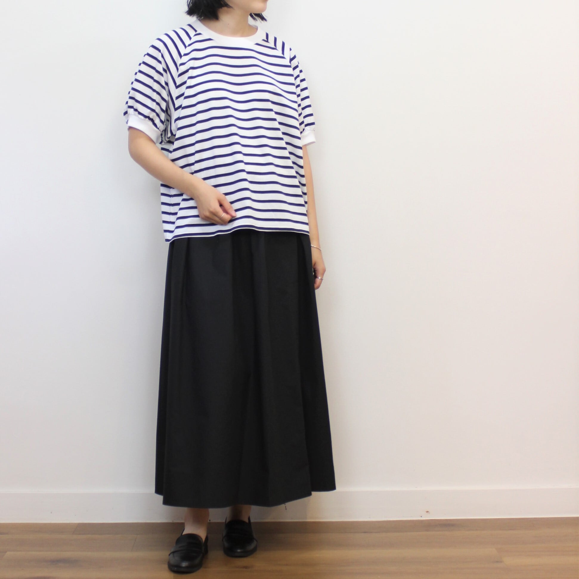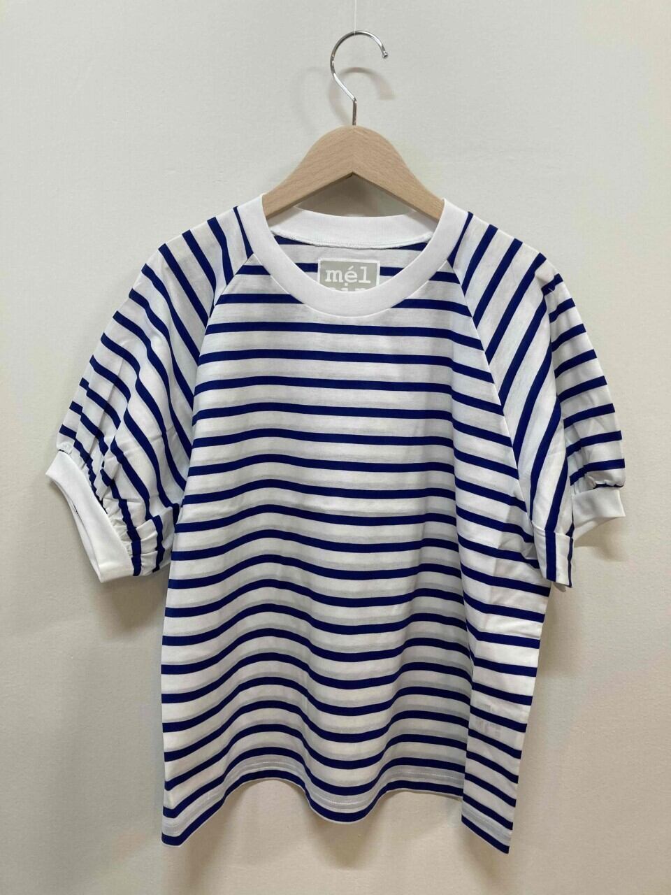melaine シルケット天竺ボーダーボリュームスリーブプルオーバー