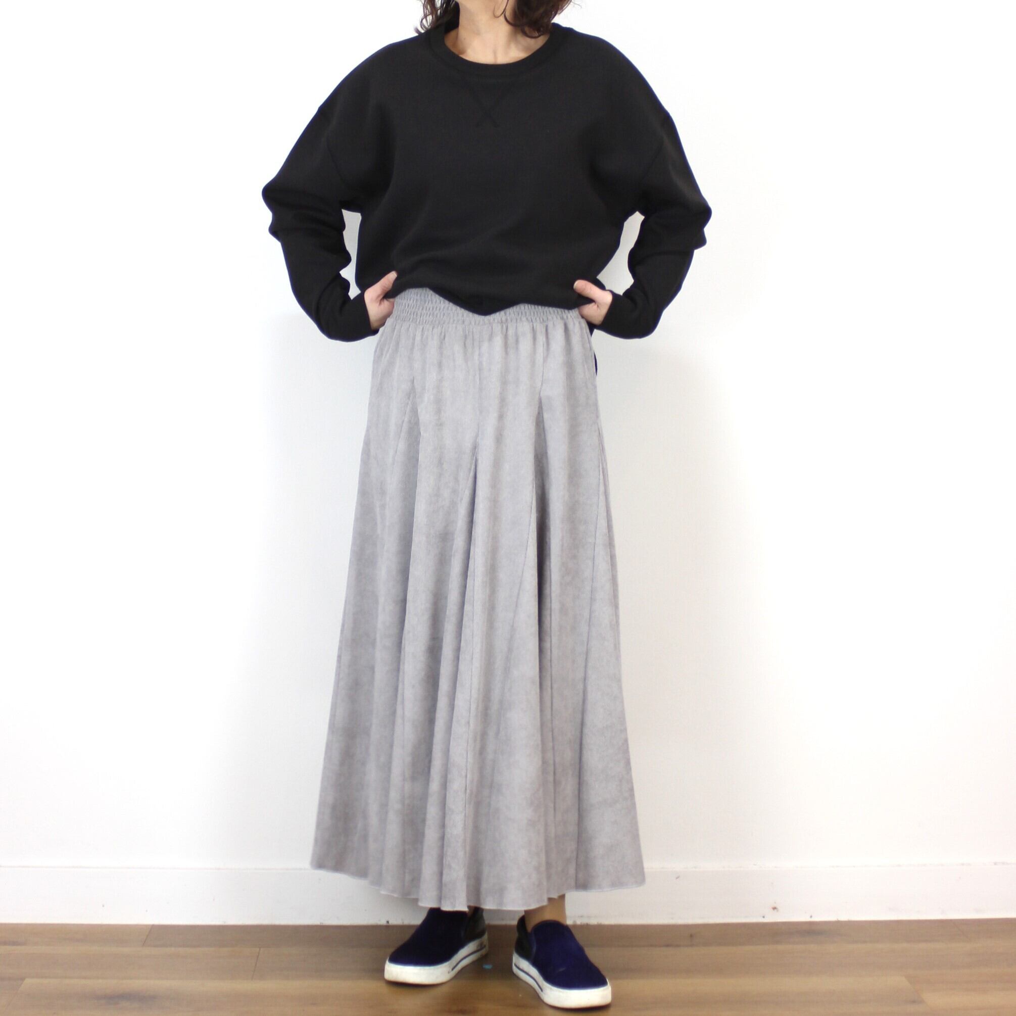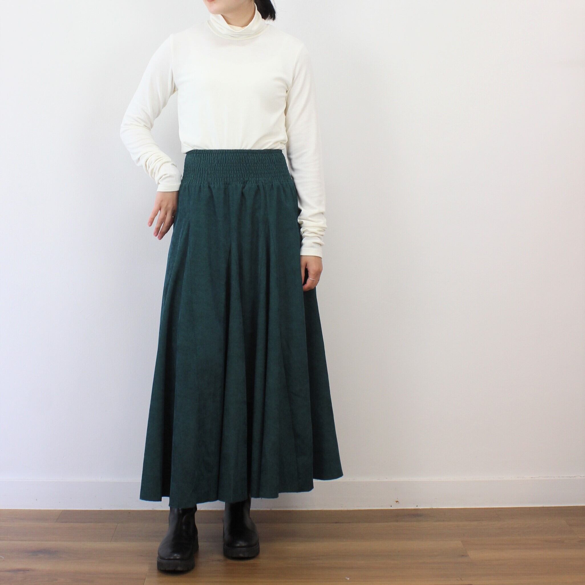chez-voeu 細コーデュロイダブルシャーリングフレアスカート