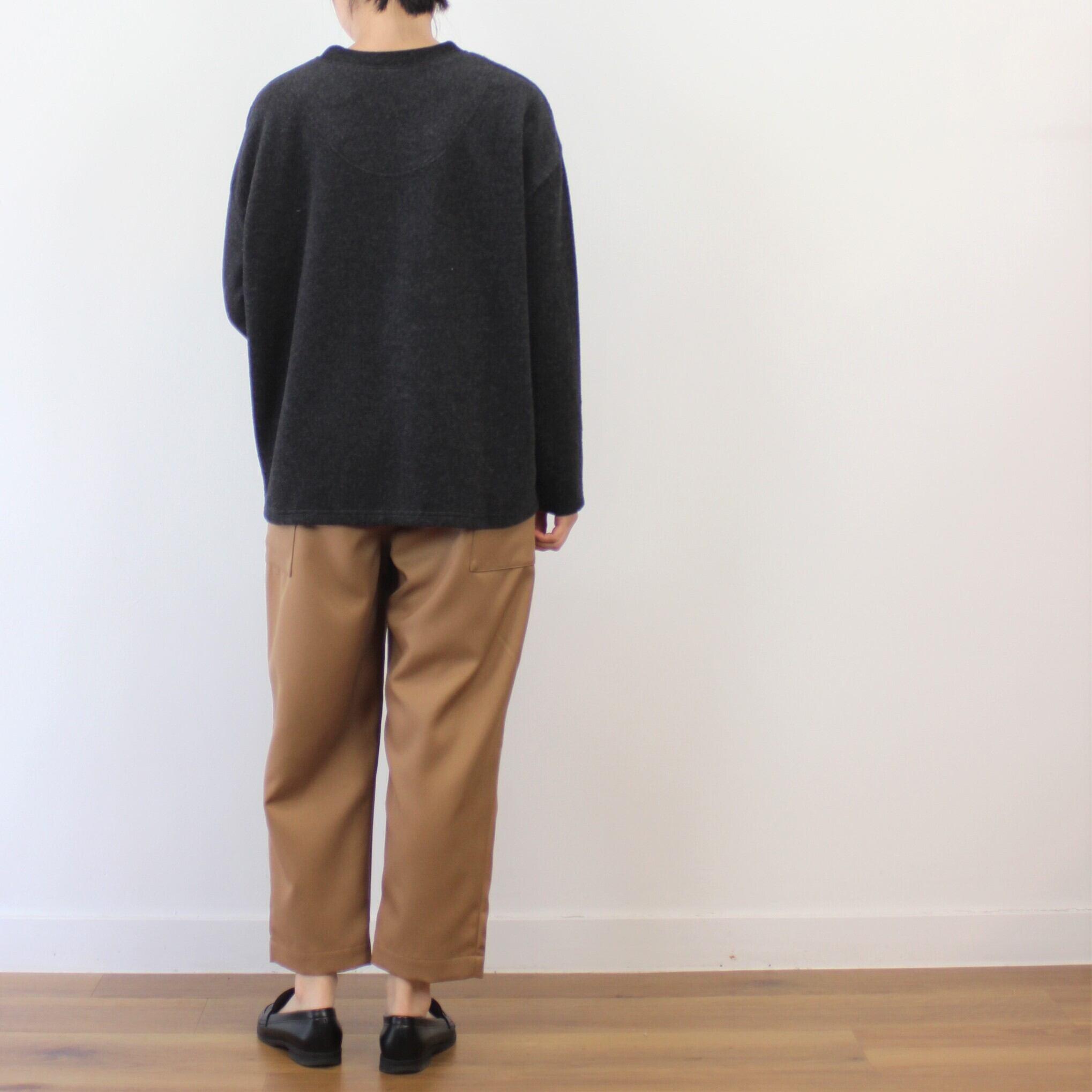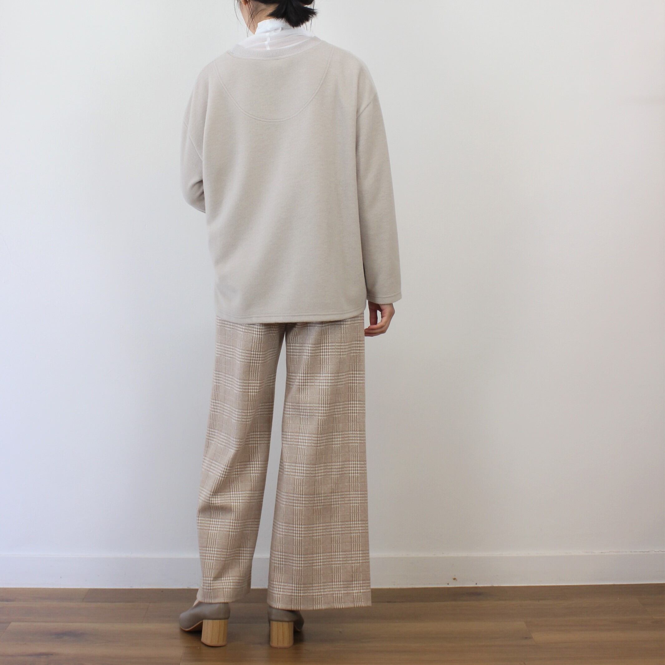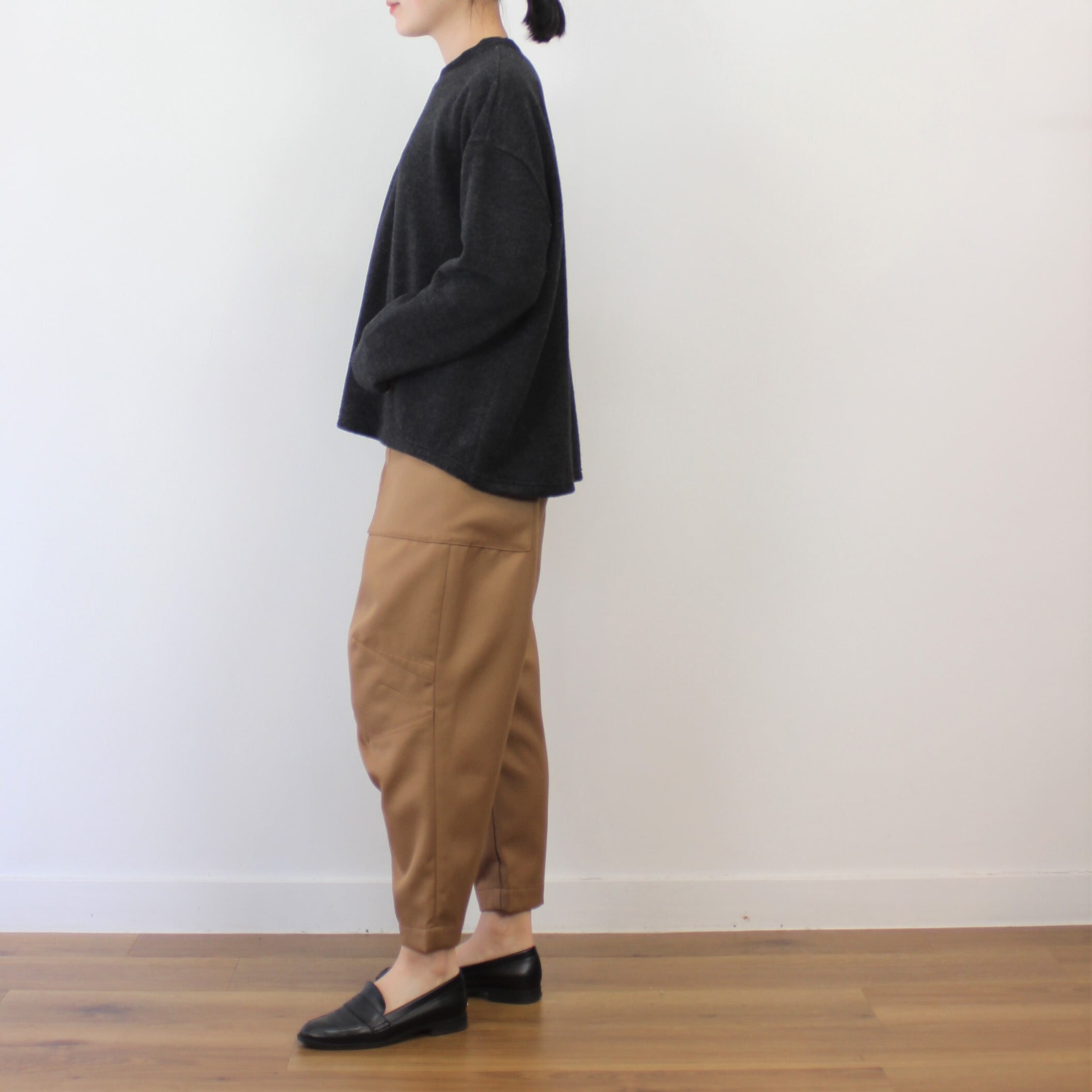 chez-voeu オリジナルの起毛ニット丸首プルオーバー。柔らかな風合いとぬくもりのある素材で、寒い季節にぴったりの一枚です。丸首デザインは、首元をスッキリと見せながらも暖かさをキープ。シンプルながらもこだわりのデザインで、コーディネートにひとクセ加えます。