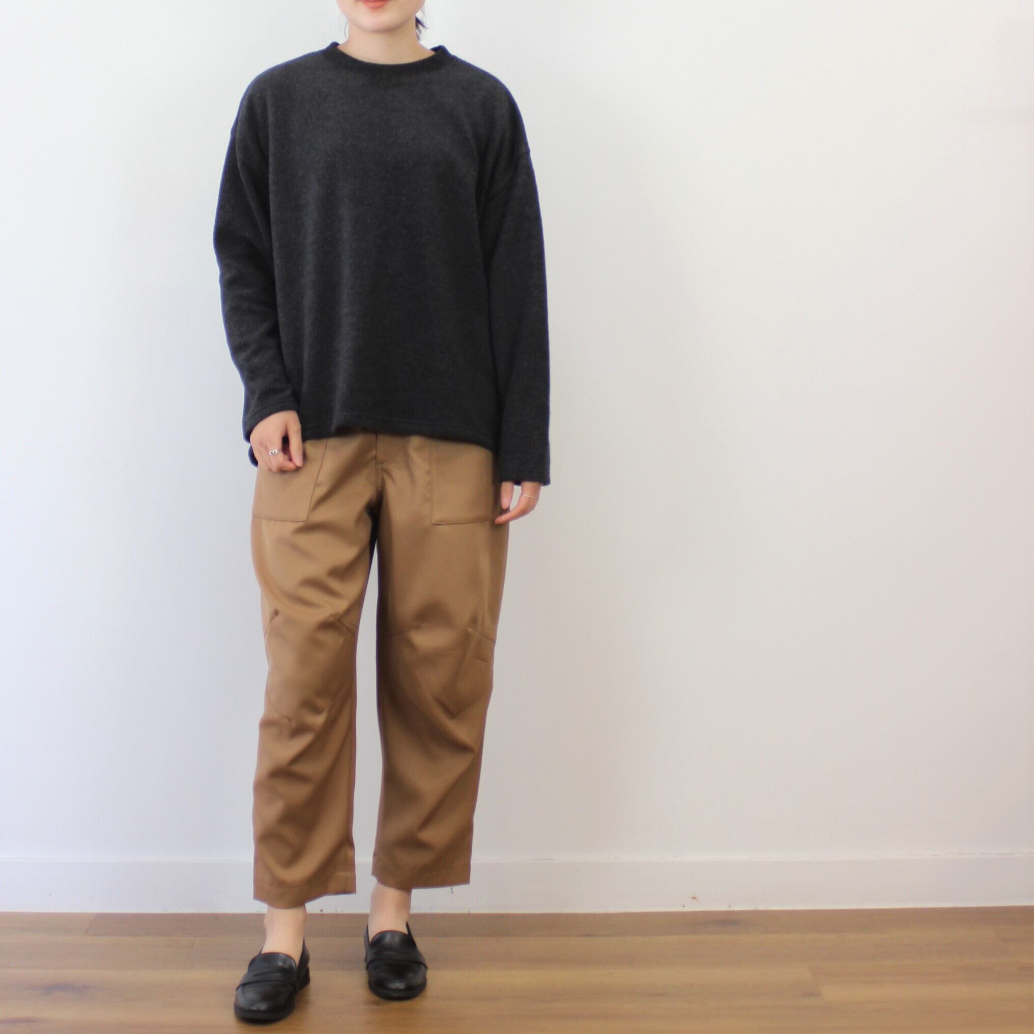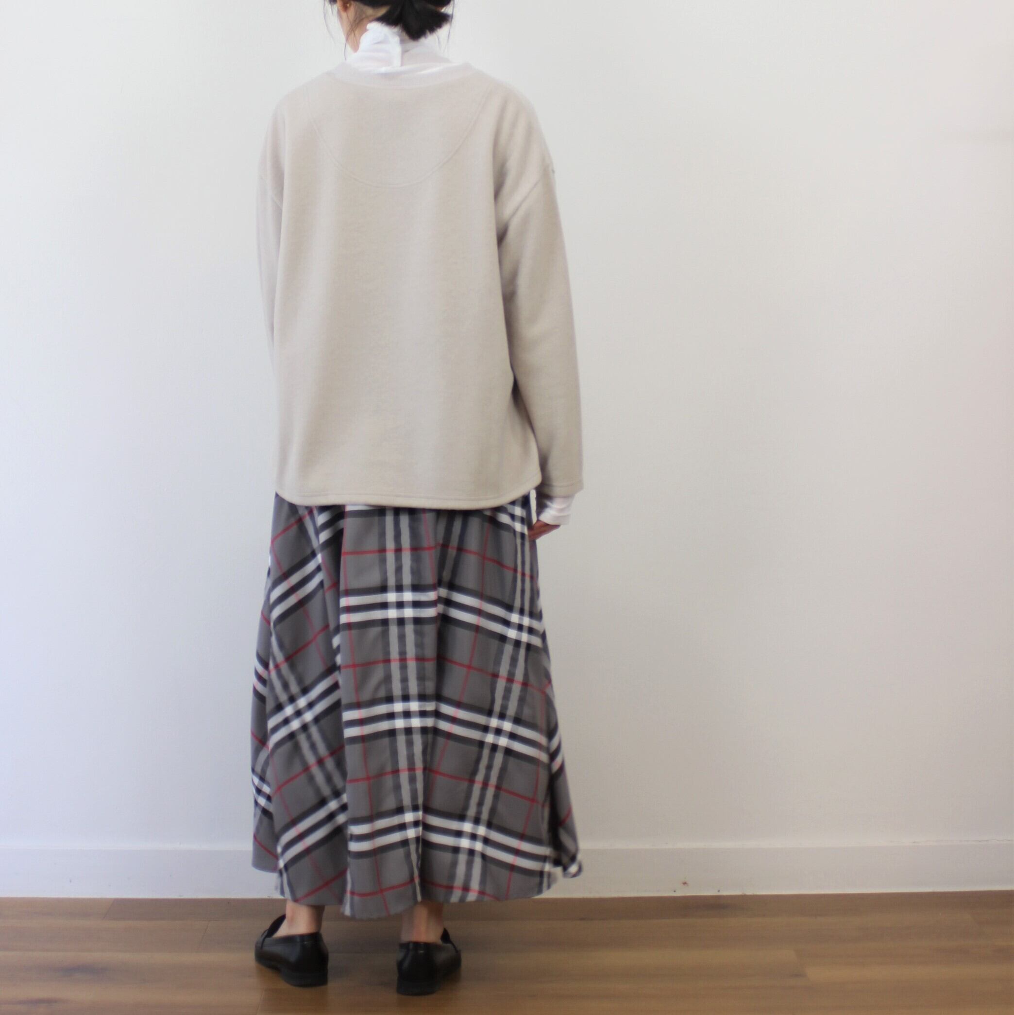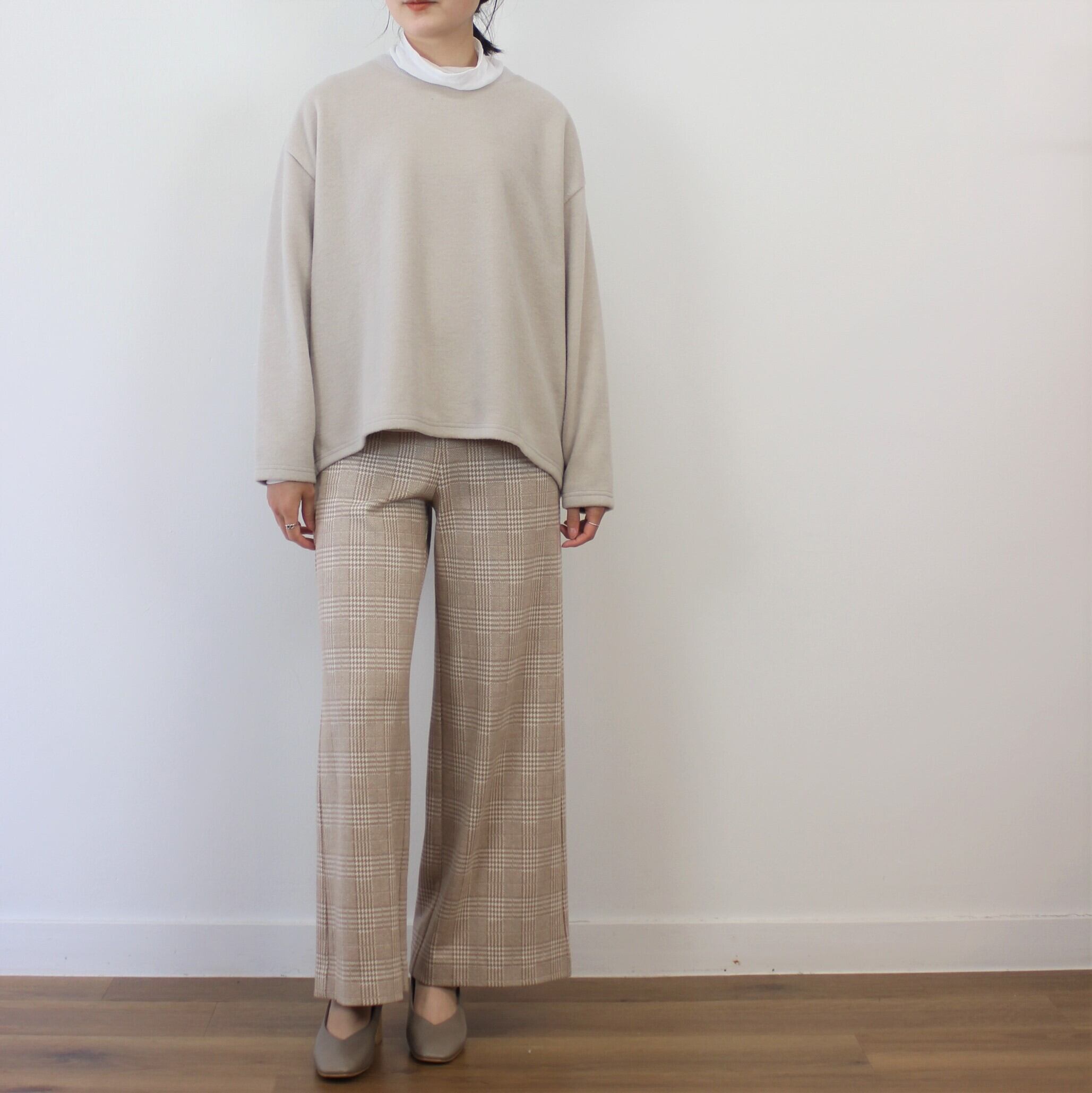chez-voeu オリジナルの起毛ニット丸首プルオーバー。柔らかな風合いとぬくもりのある素材で、寒い季節にぴったりの一枚です。丸首デザインは、首元をスッキリと見せながらも暖かさをキープ。シンプルながらもこだわりのデザインで、コーディネートにひとクセ加えます。