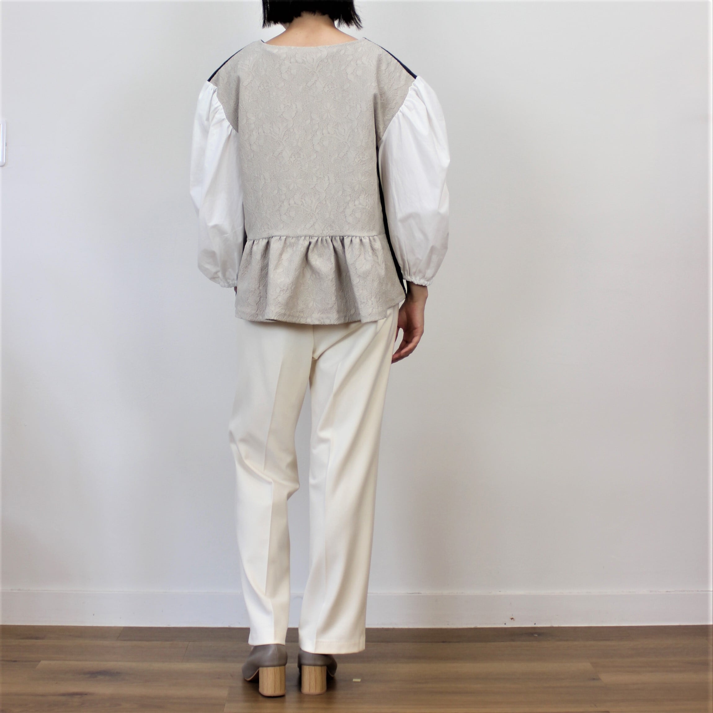 chez-voeu ギャザースリーブコンビブラウス