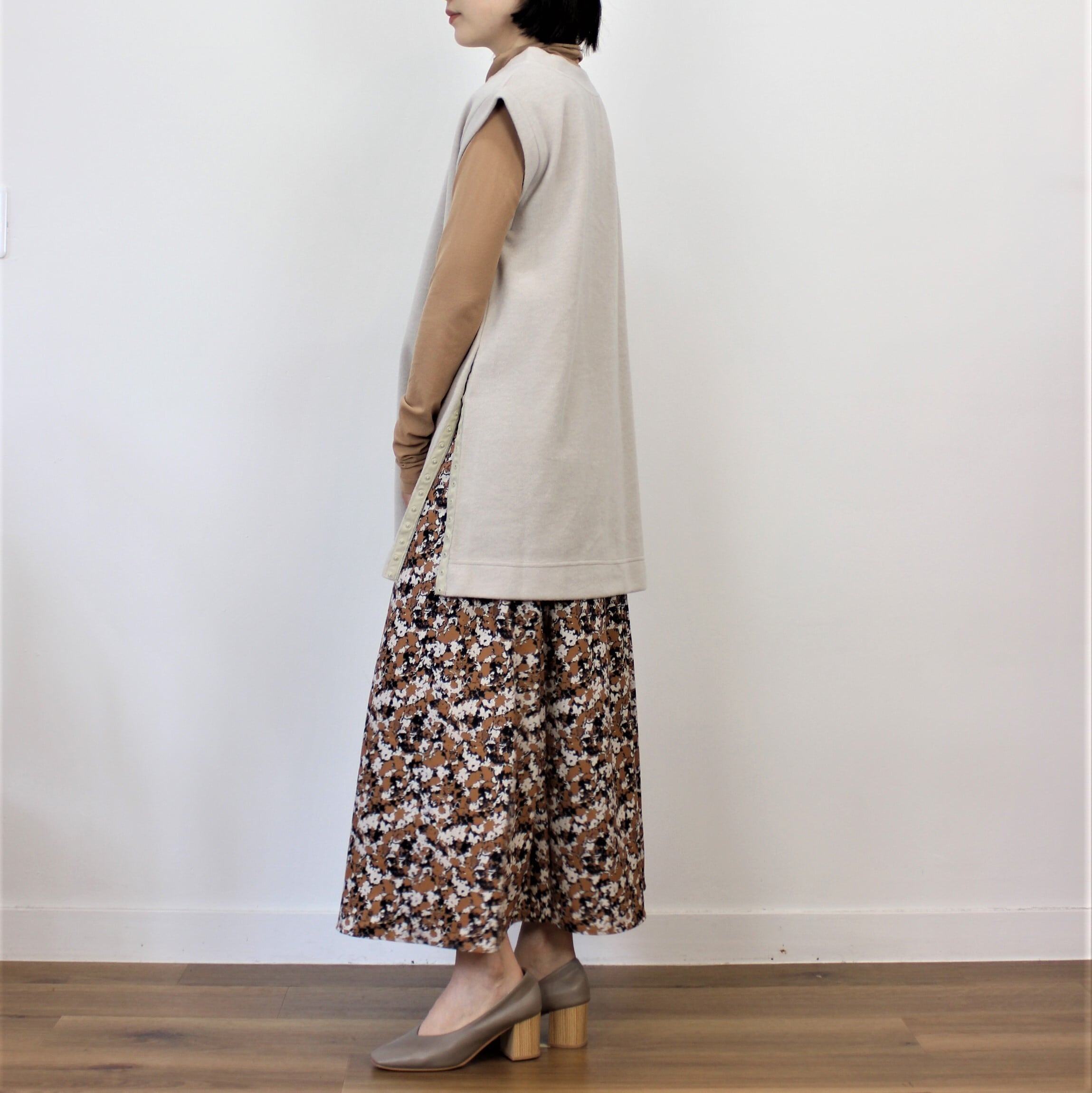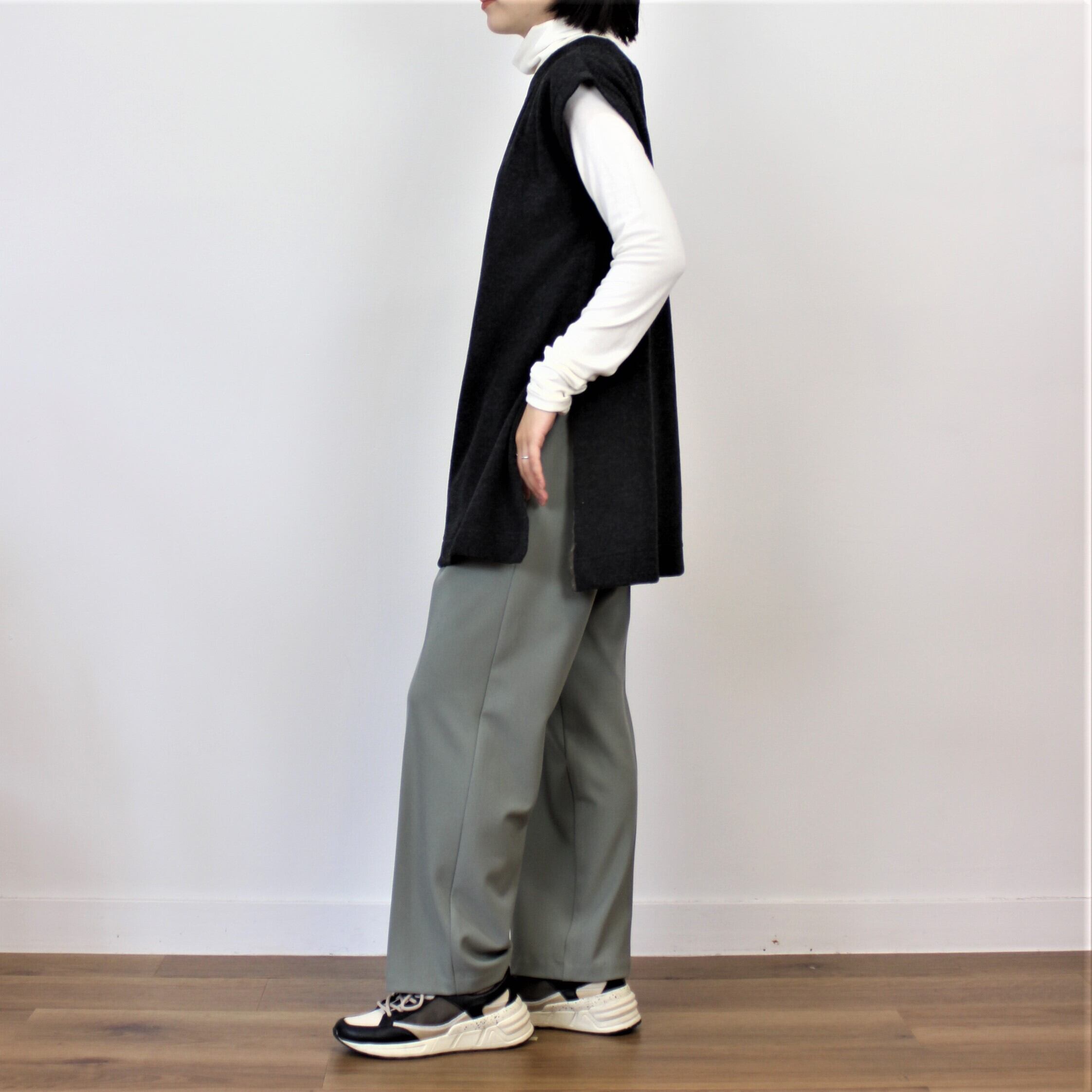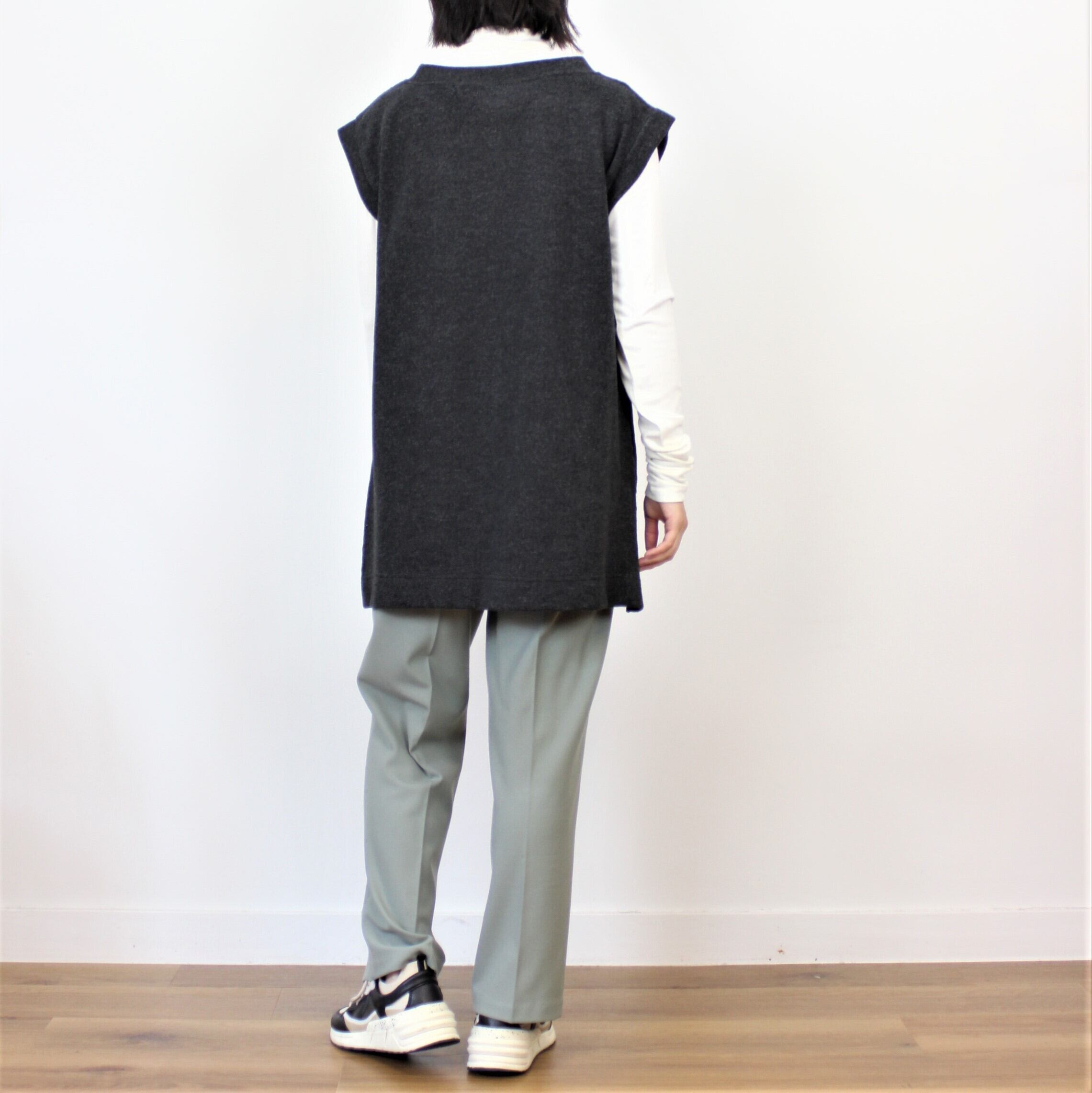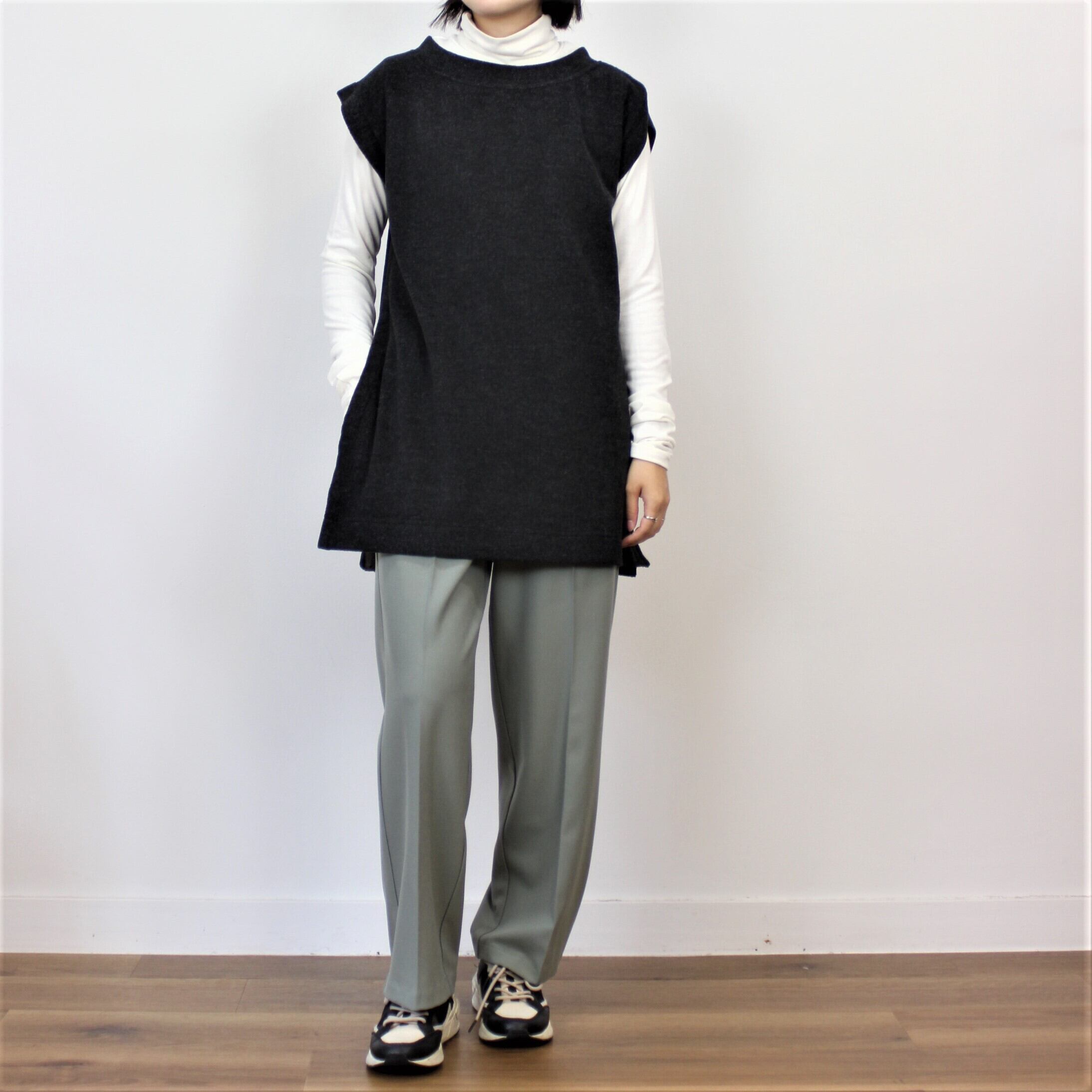 温かみのある起毛ニット素材でできたロングホックスリットベスト。肌触りがふわふわで、着心地の良さが特徴です。寒い季節にはもちろん、春先や秋口にも重ね着スタイルで活躍します。