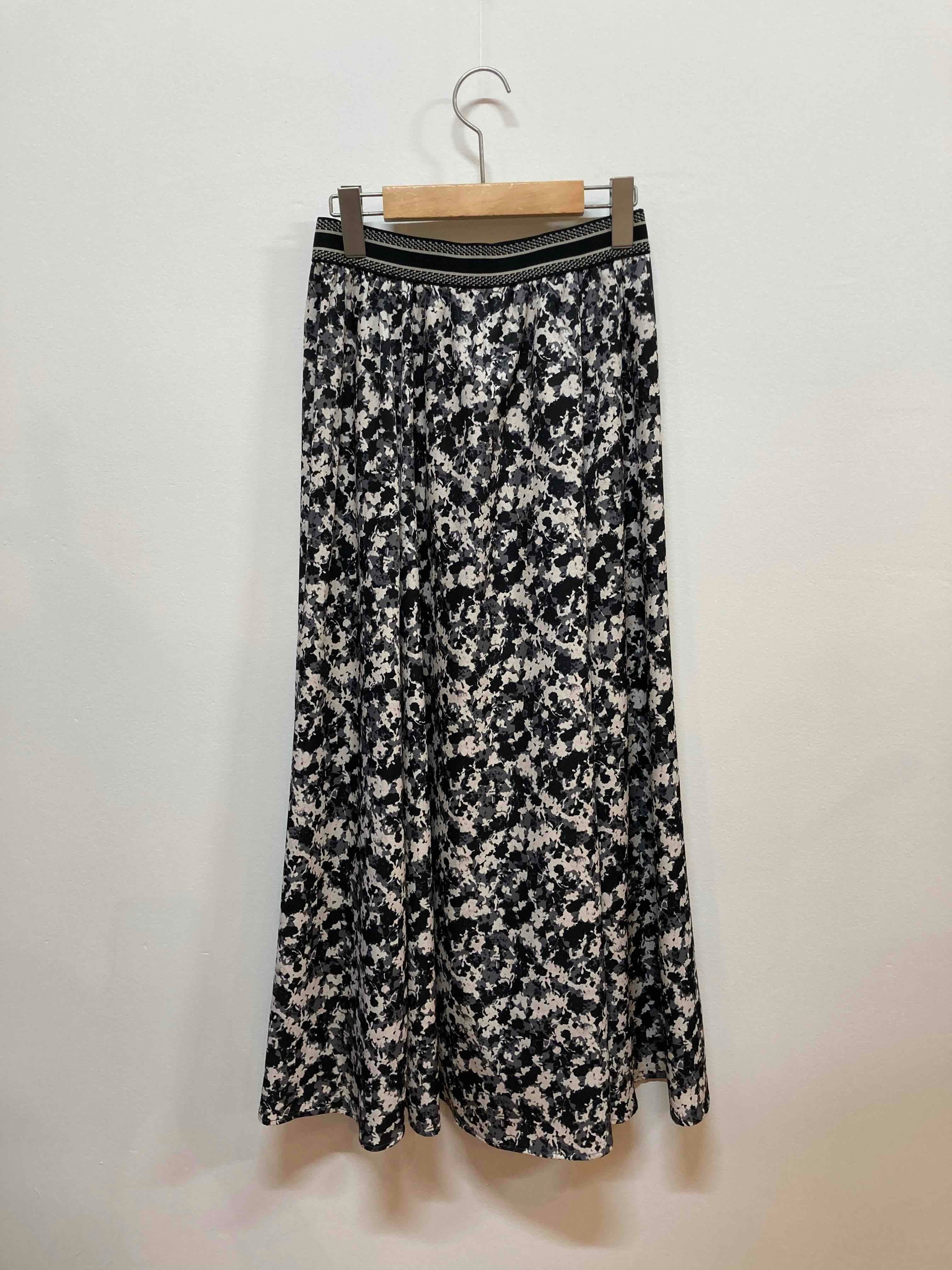 chez-voeu ダーティプリントボーダーゴムベルトスカート