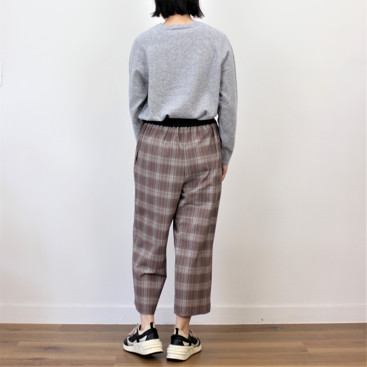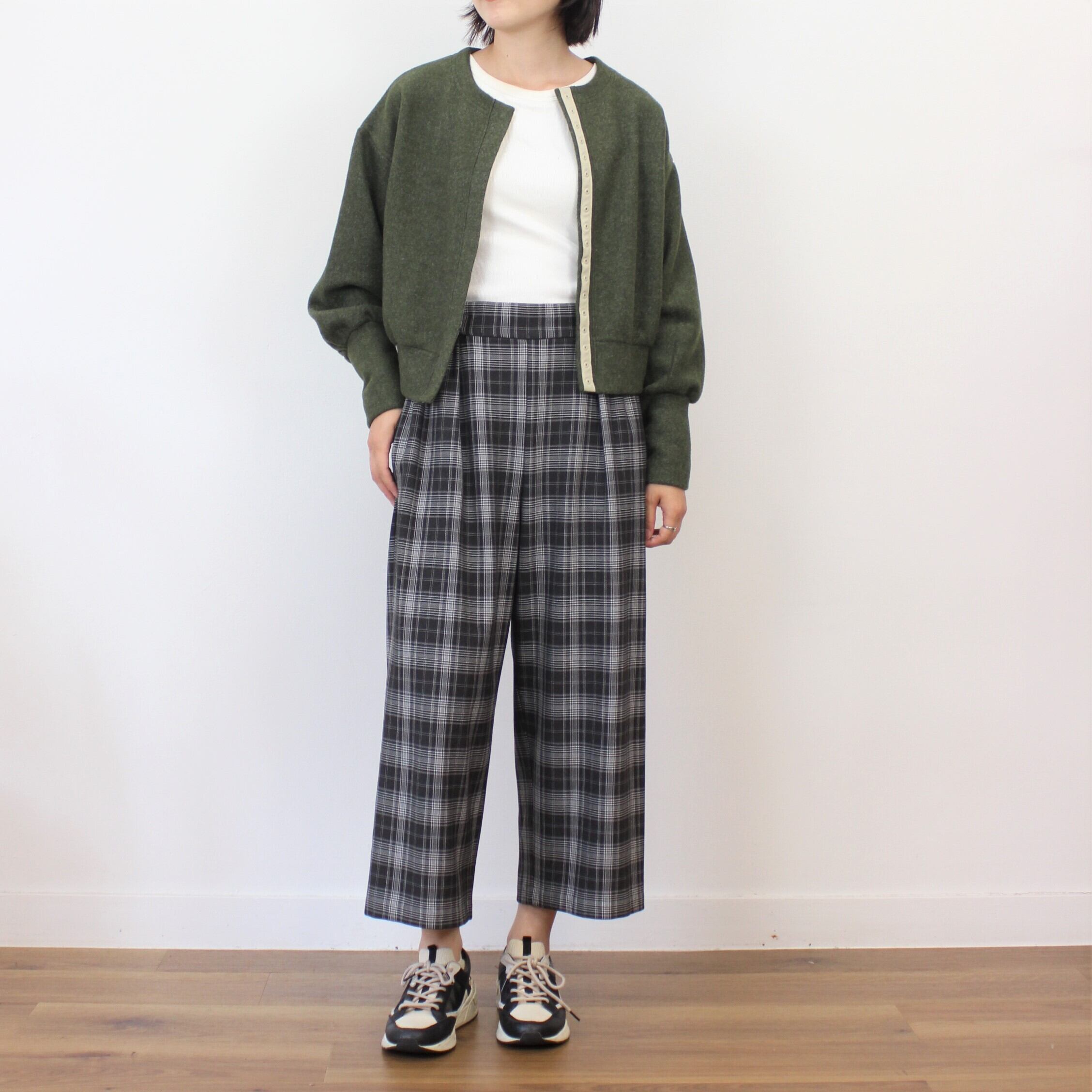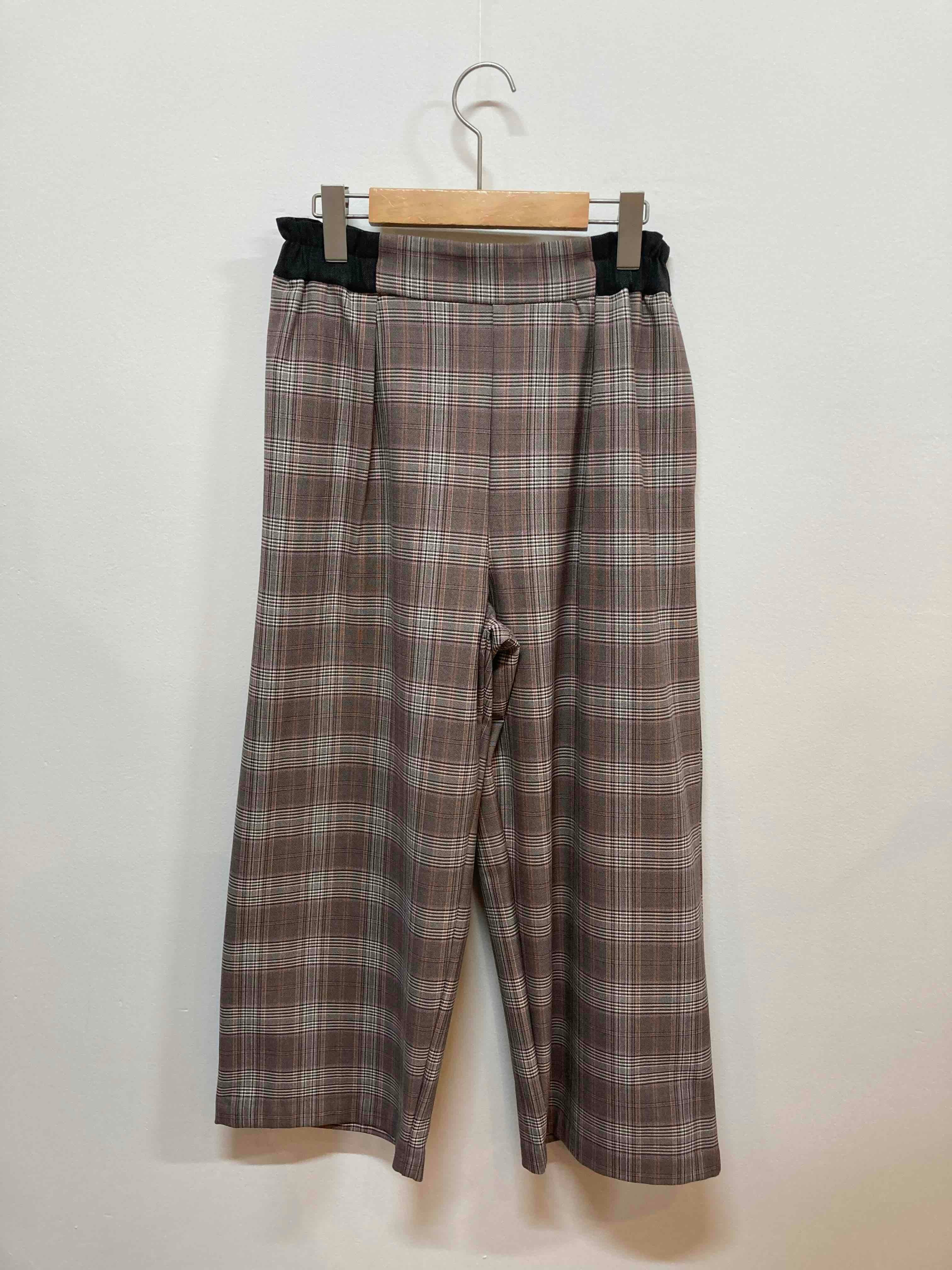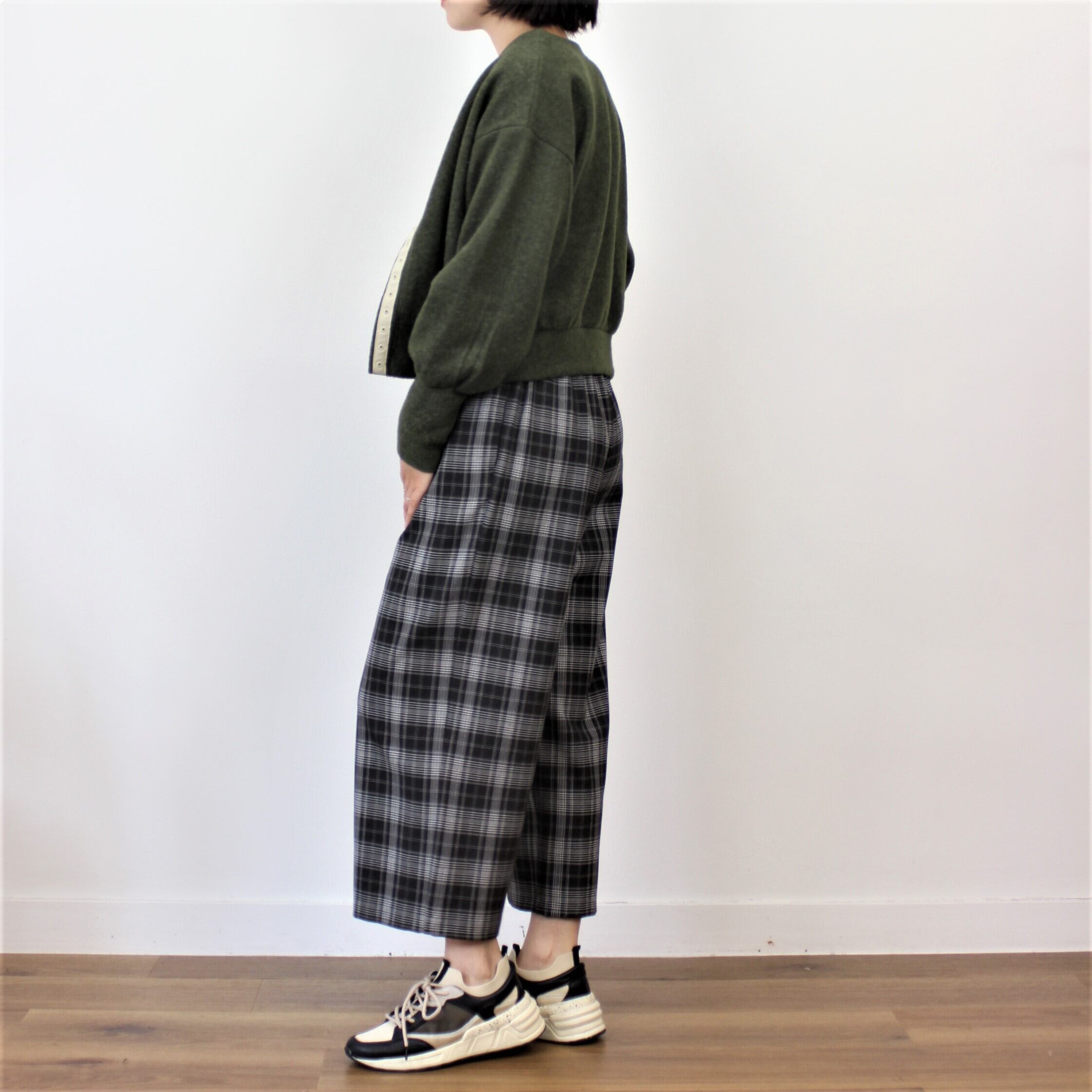chez-voeu ウォッシャブル裏起毛グレンチェックワイドパンツ