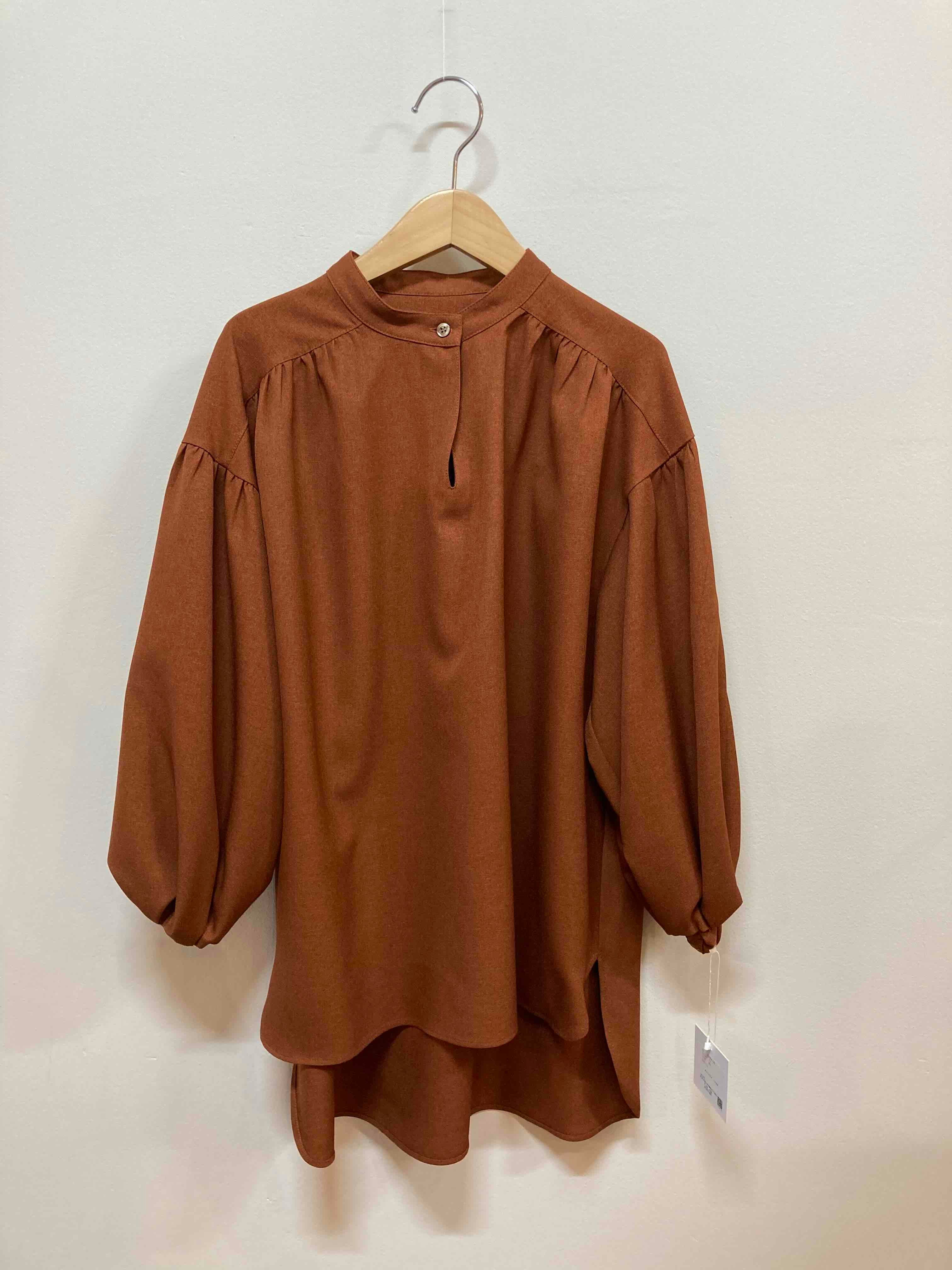 chez-voeu ラナテックツイルスタンドカラーギャザーブラウス