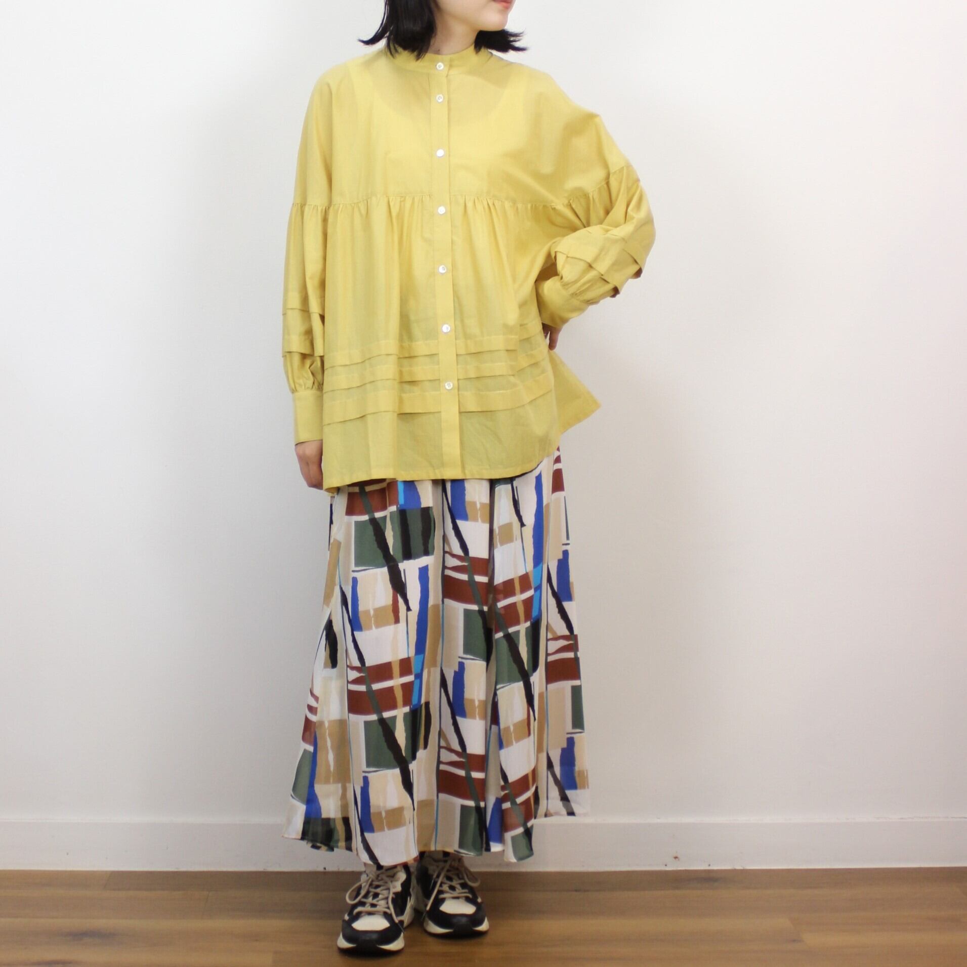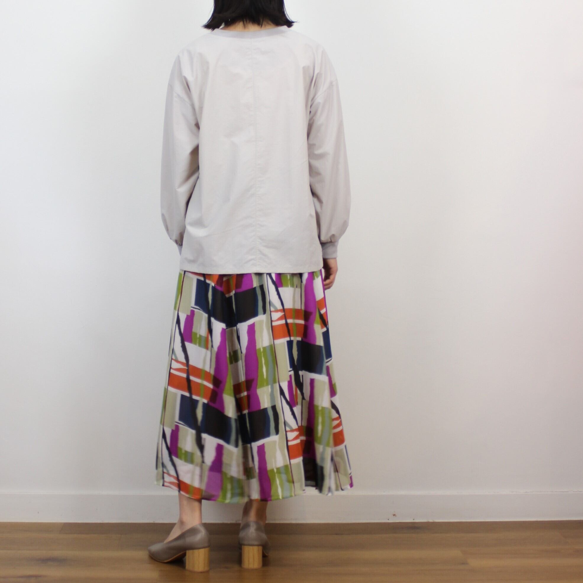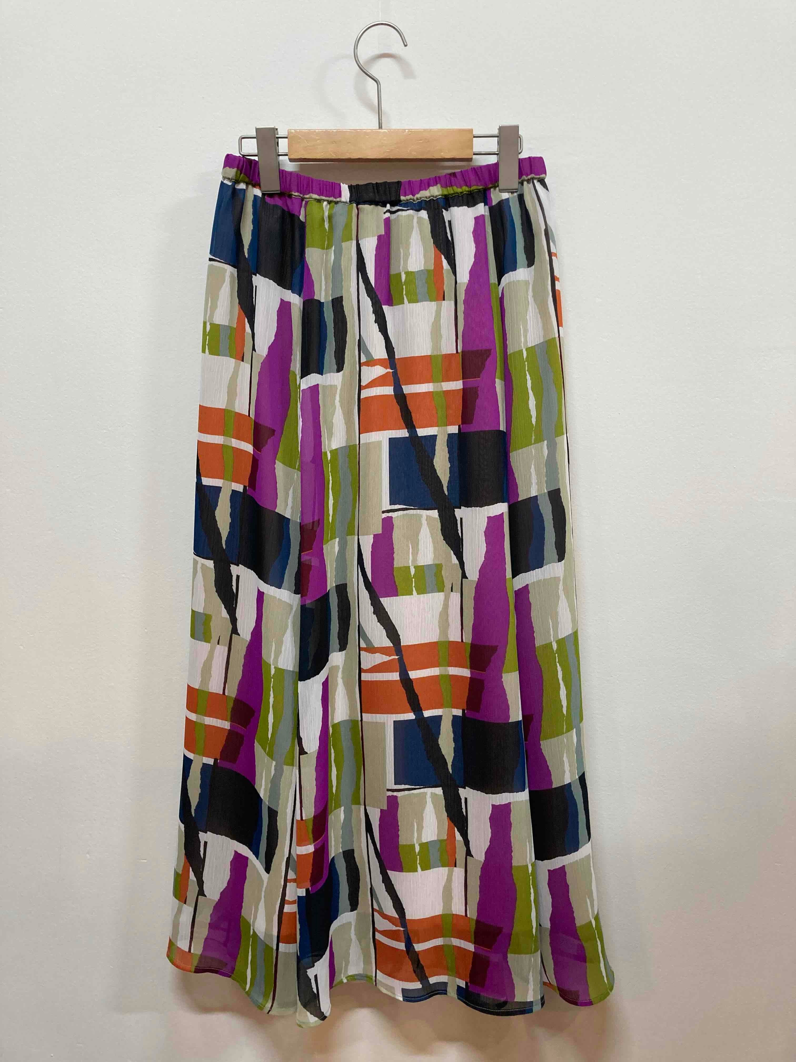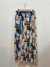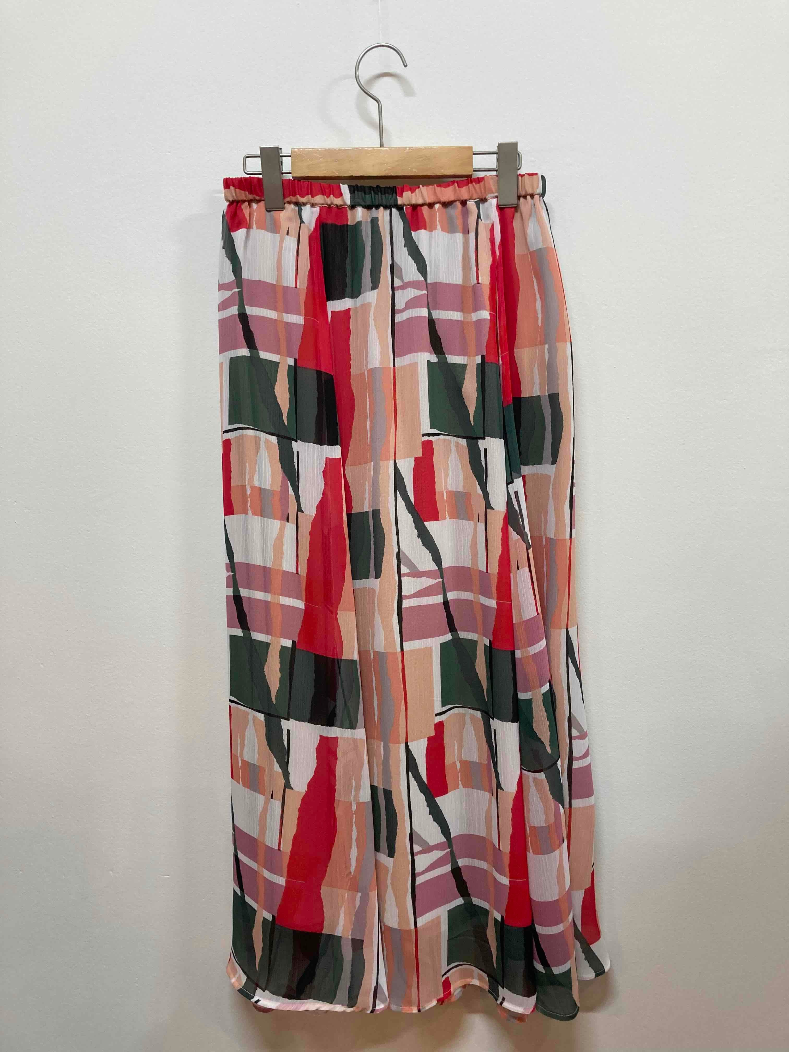 chez-voeu ブロックカラープリントダブルギャザースカート