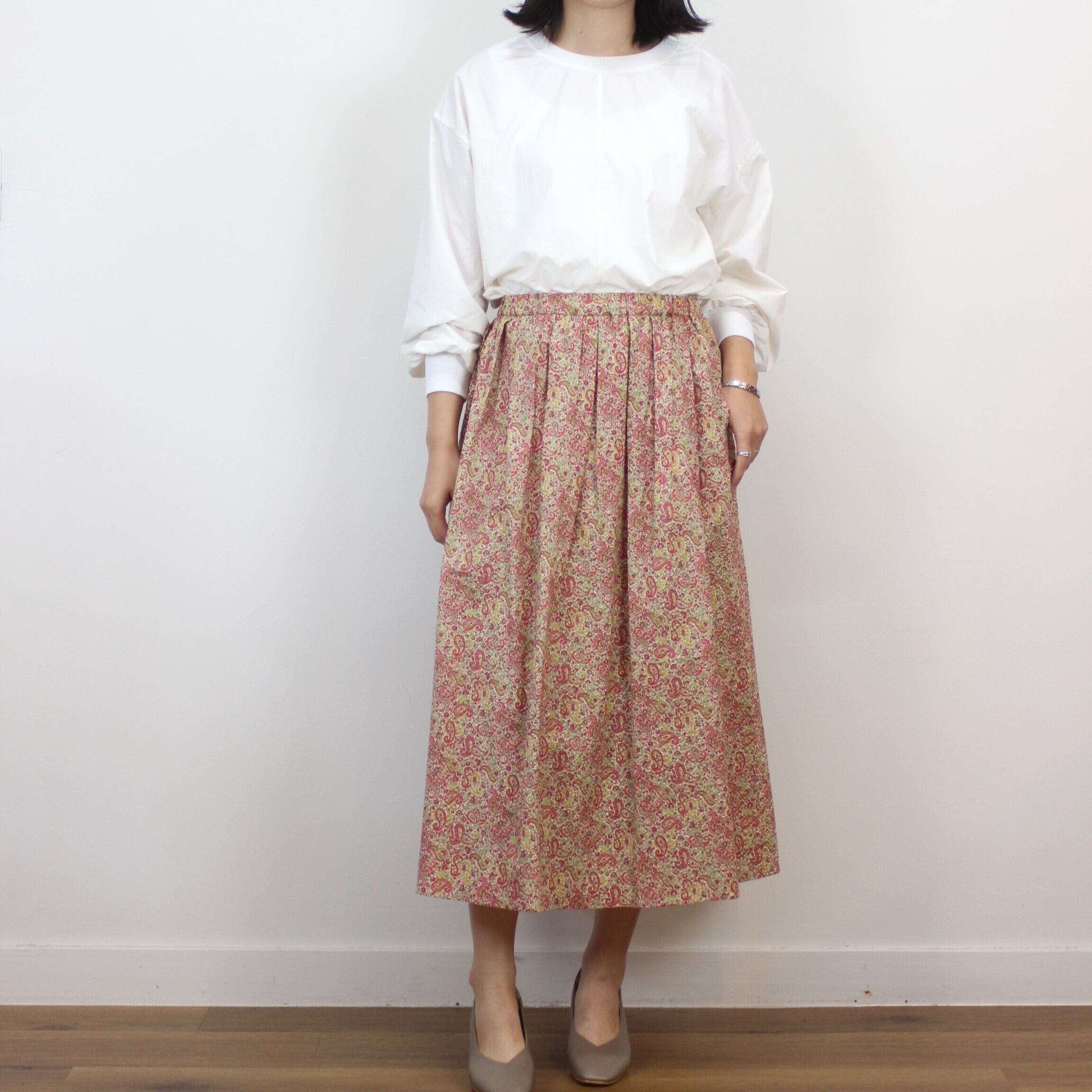 chez-voeu イージーケアローンリバティプリントランダムタックスカート
