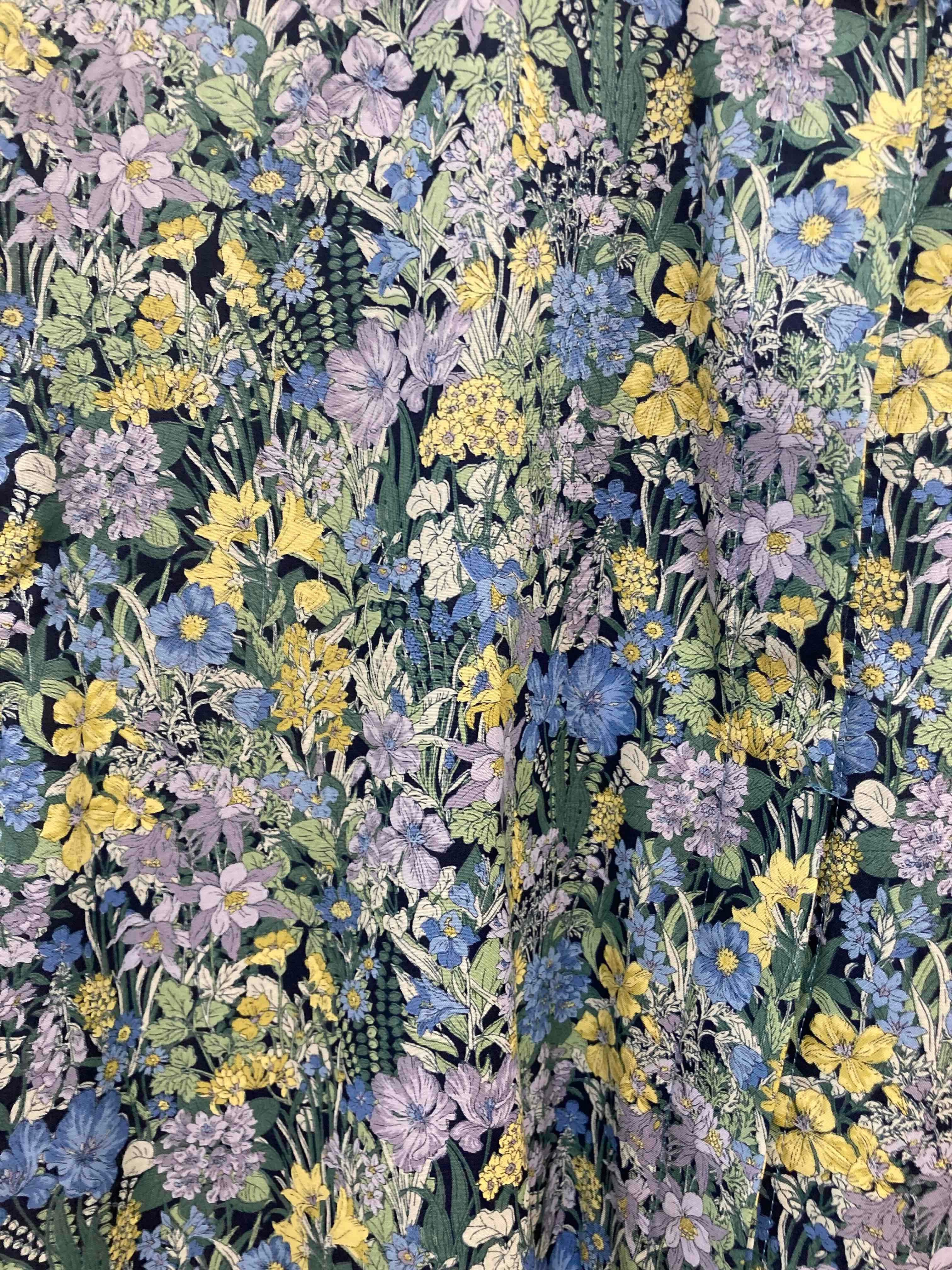 chez-voeu オーガニックコットンフラワープリントバンドカラータックブラウス