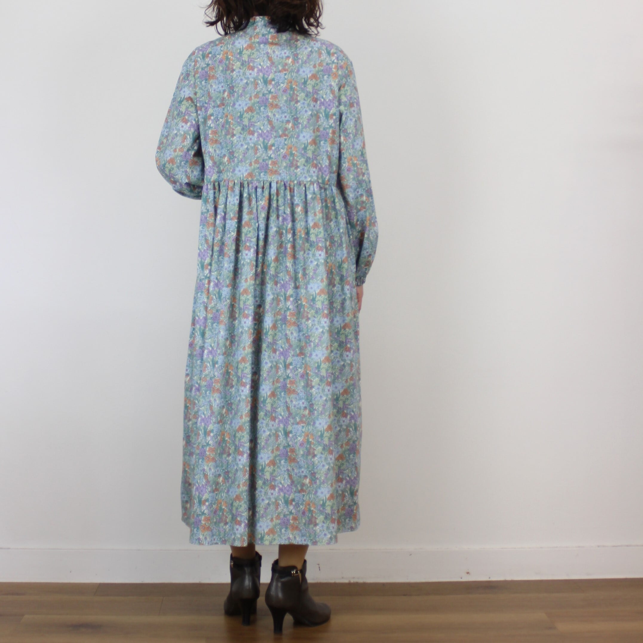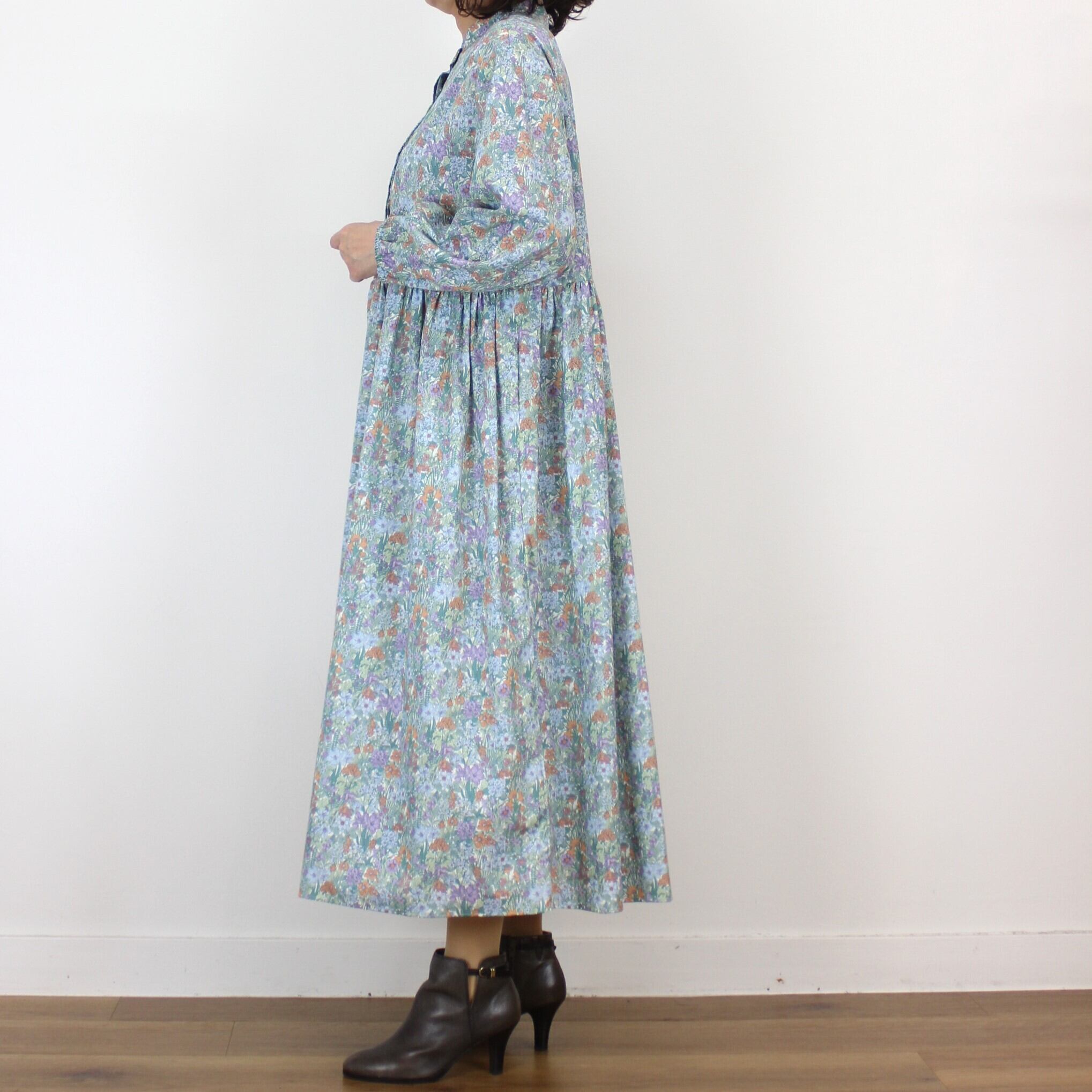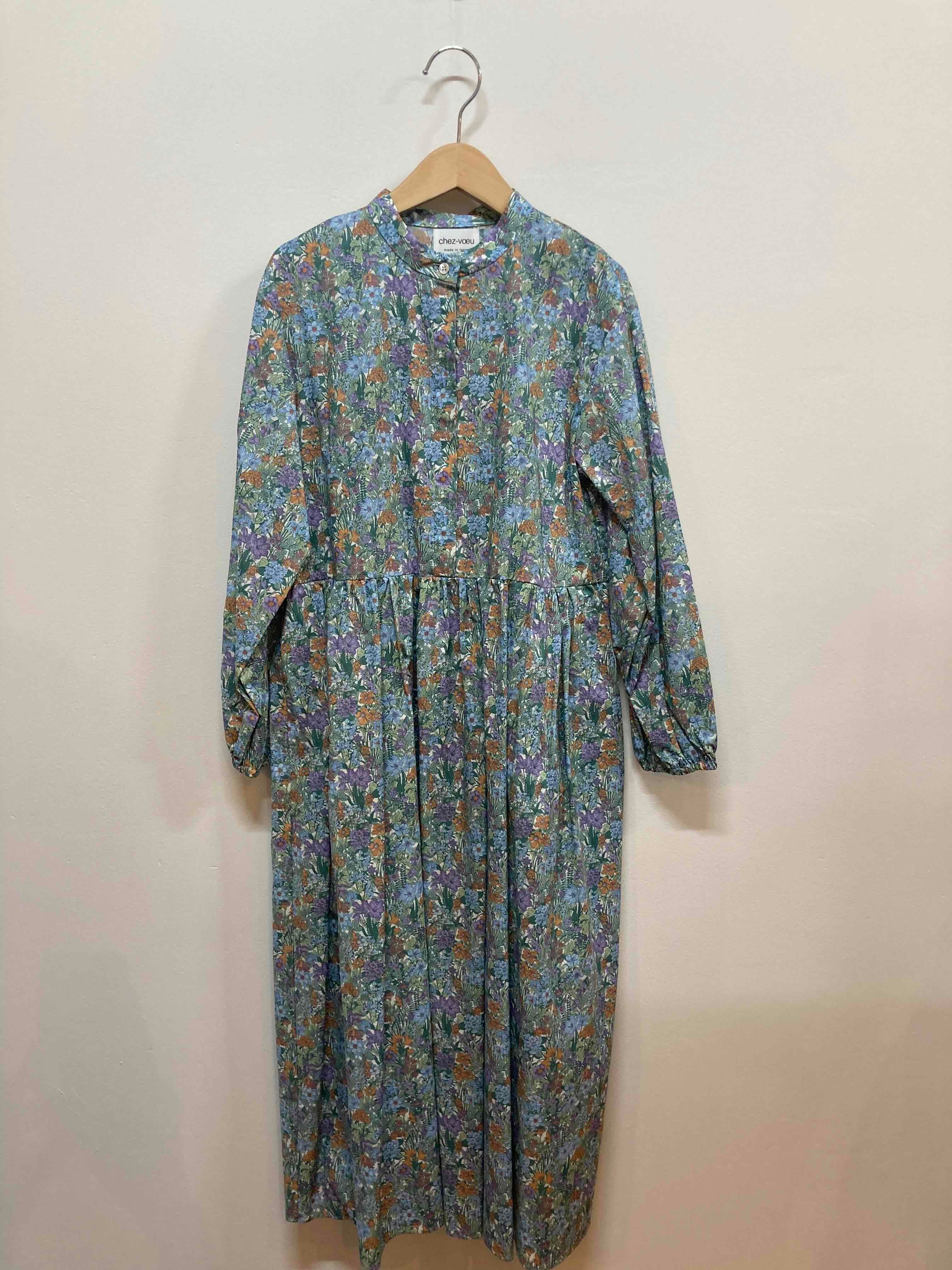 chez-voeu オーガニックコットンプリントギャザーワンピース
