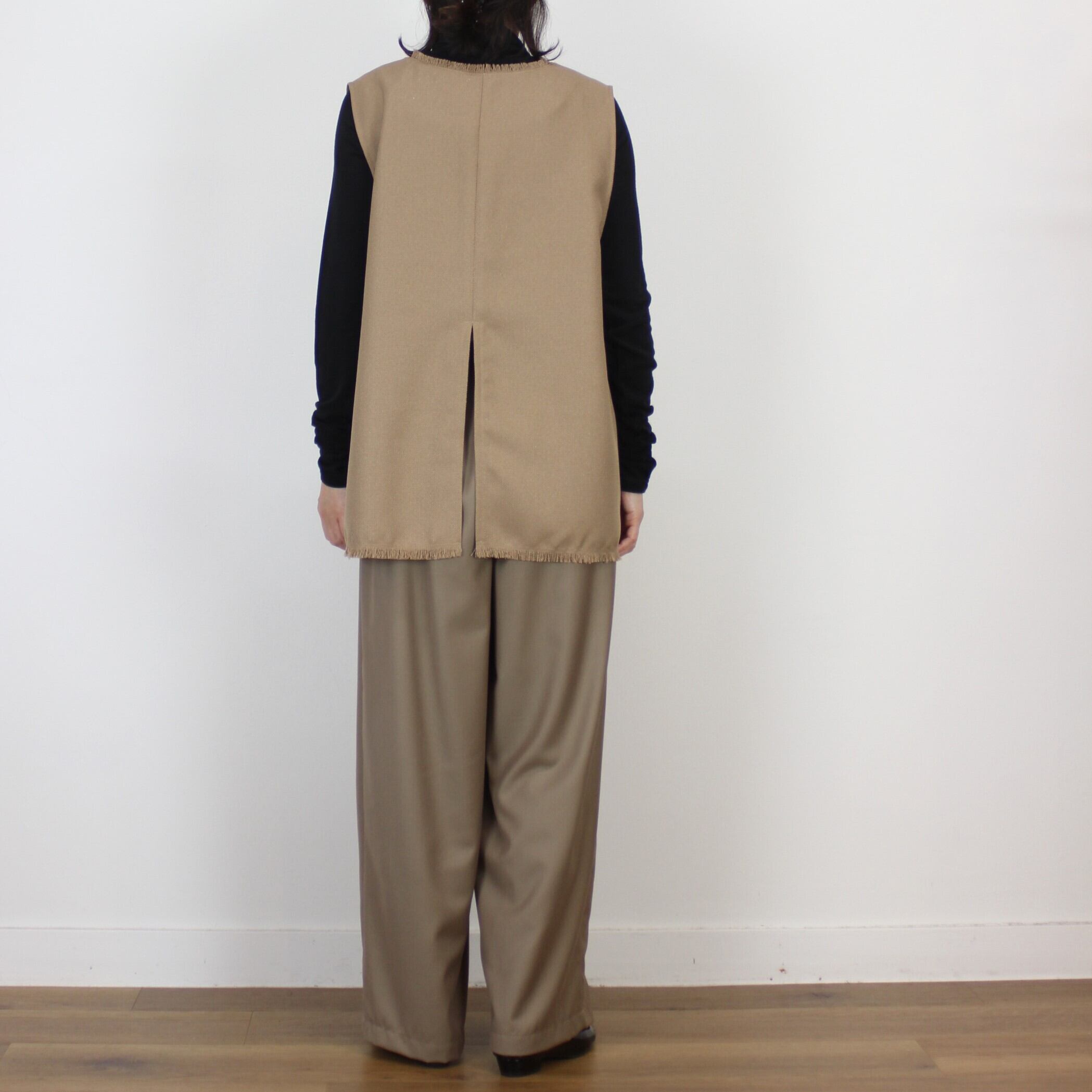 chez-voeu ラメツイルバックスリットベストは、煌びやかなラメの質感と洗練されたデザインが魅力のアイテムです!バックスリットが施されており、動くたびに美しいシルエットを演出します。シンプルな装いに加えるだけで、グッとおしゃれ度がアップし、どんなシーンでも目を引く存在感を放ちます。