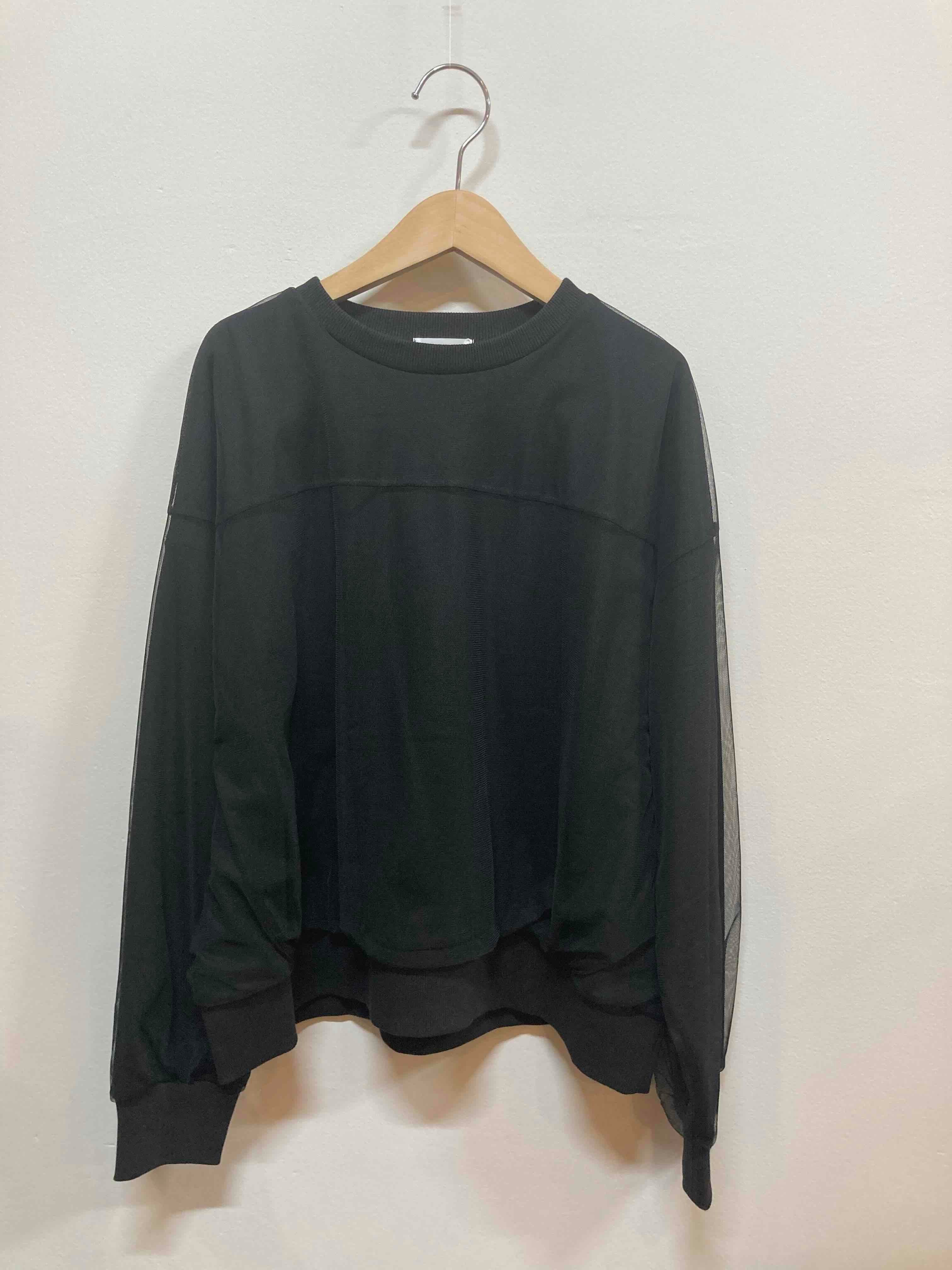 chez-voeu 裏毛×チュールコンビプルオーバーは、魅力的なデザインと快適な着心地が特長のアイテムです!裏毛素材があたたかさを提供し、チュール部分がさりげない華やかさを演出します。