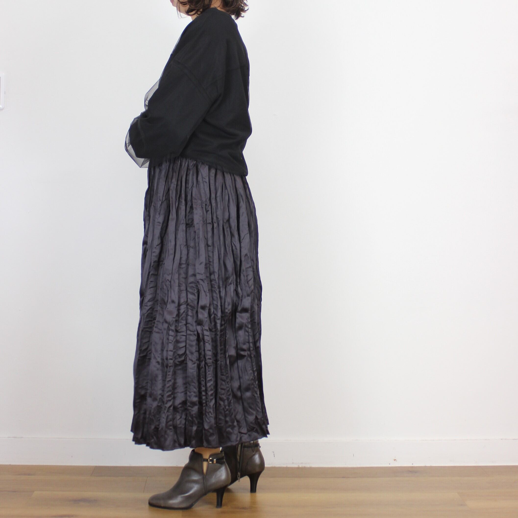 chez-voeu サテンランダムプリーツスカート
