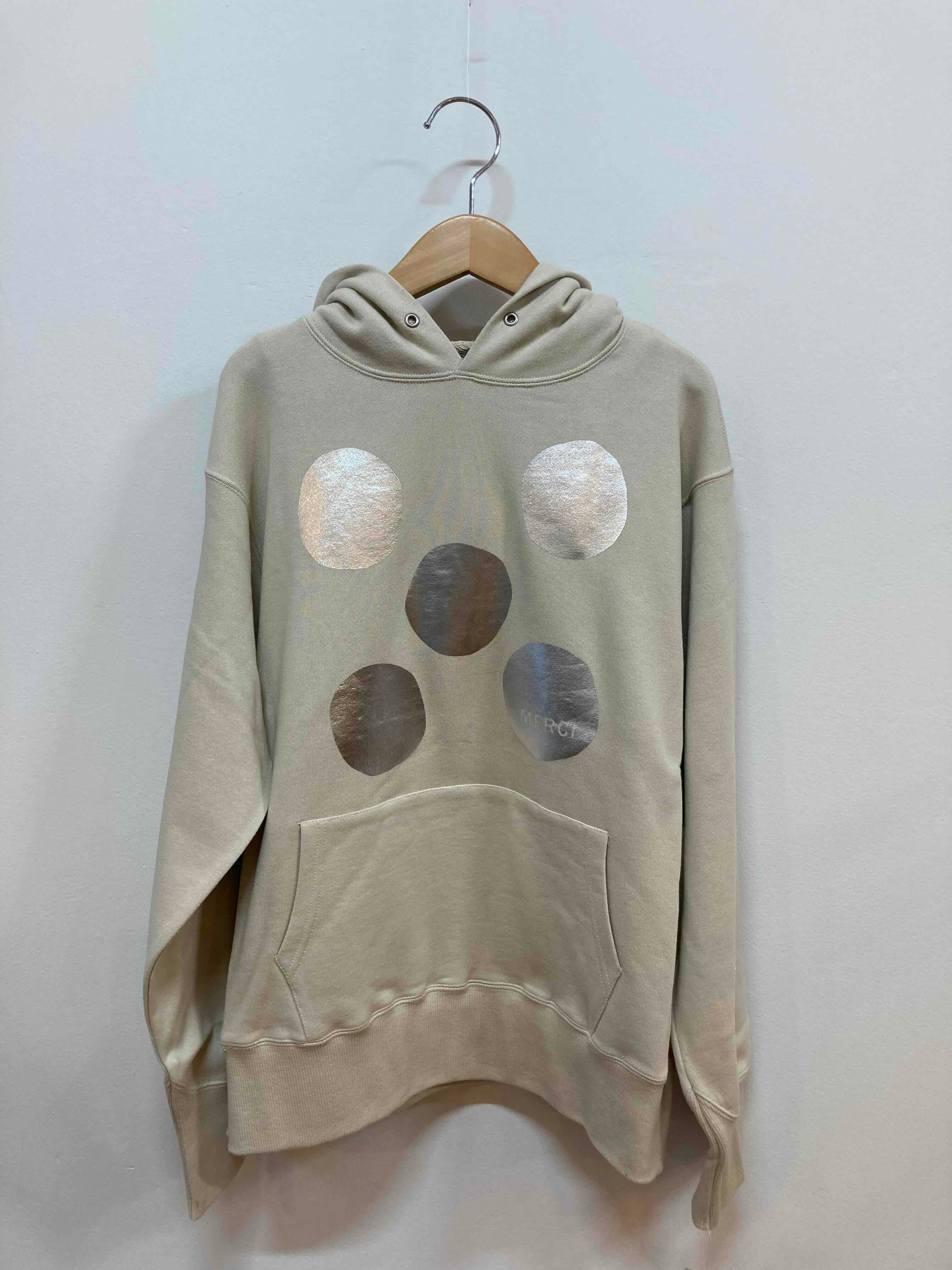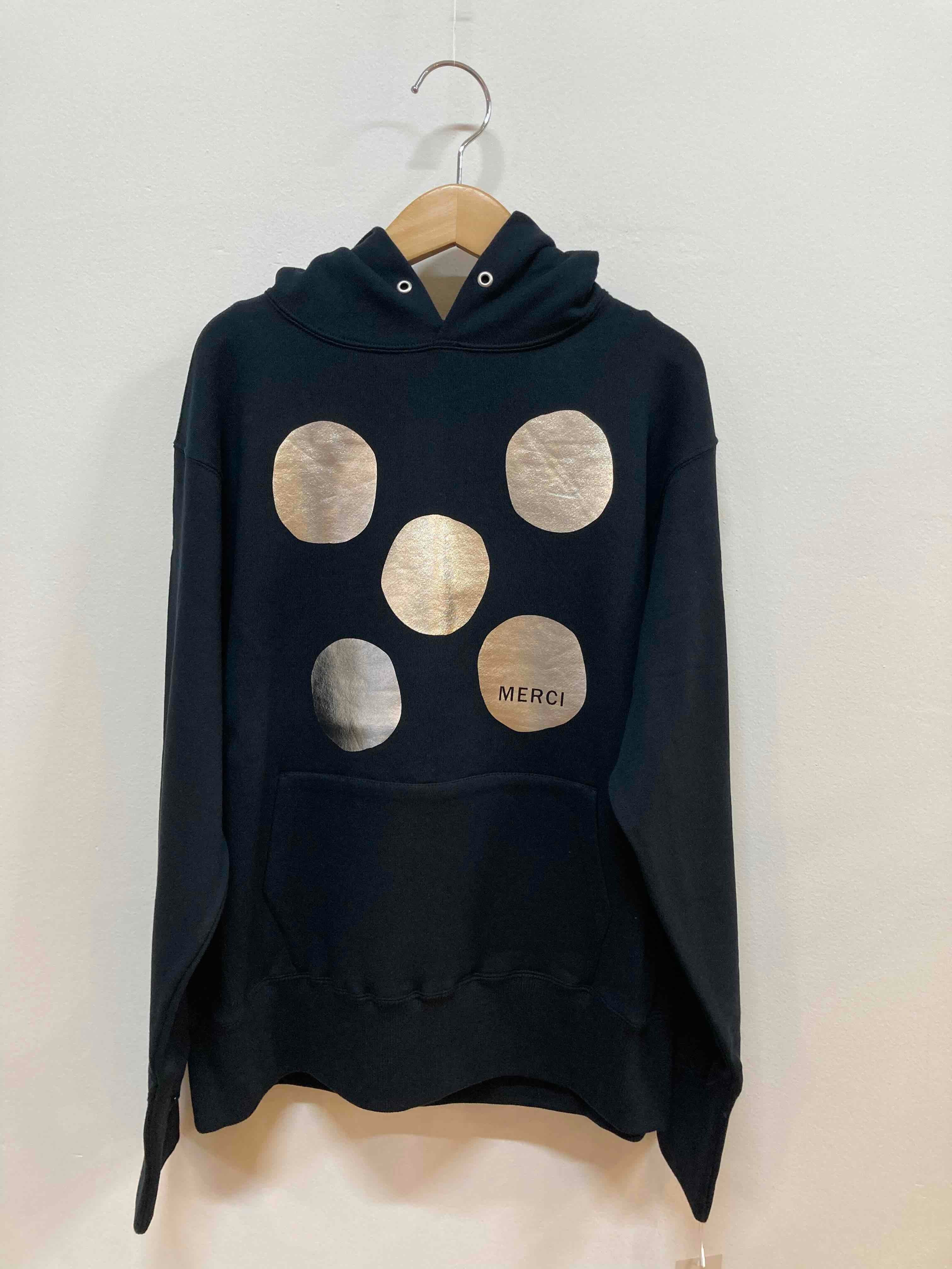 mekaine ドット箔プリント裏毛フーディーは、フード付きのデザインがカジュアルな印象を演出し、ラフなスタイルを楽しむことができます。シンプルなボトムスやデニムと合わせることで、旬のコーディネートが簡単に完成します。
