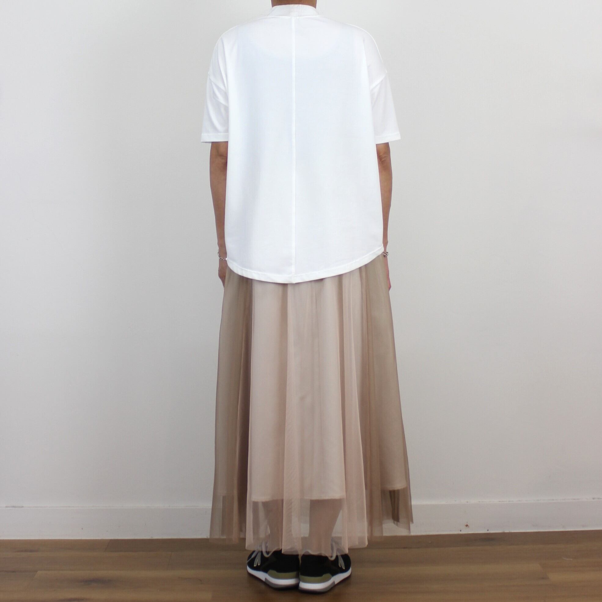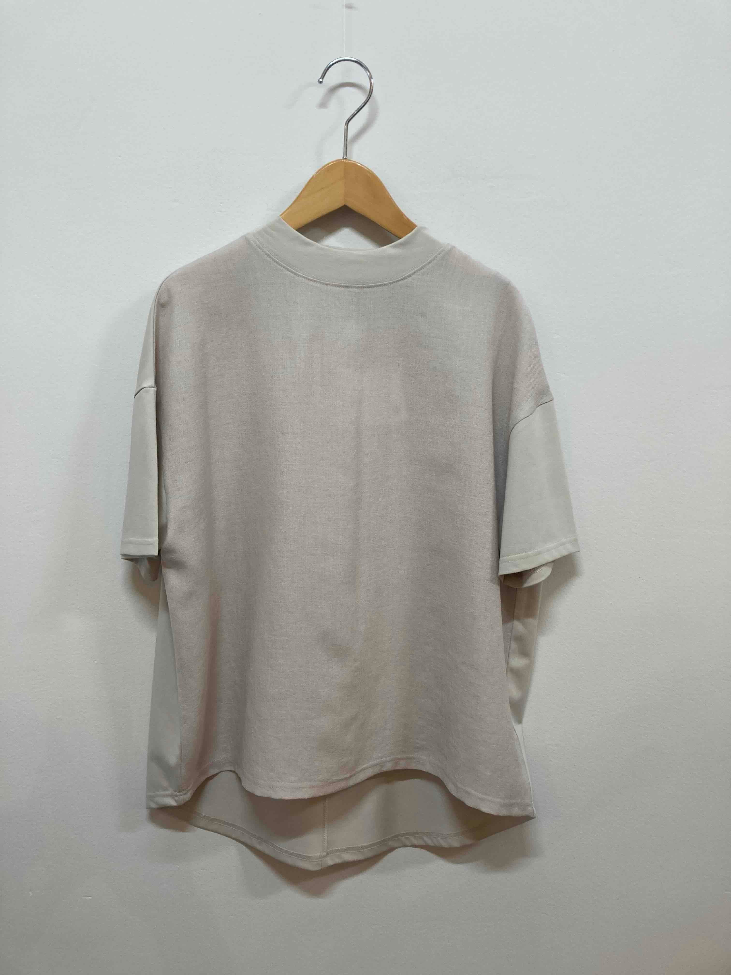 chez-voeu 布帛×カットソーモックネック五分袖プルオーバー