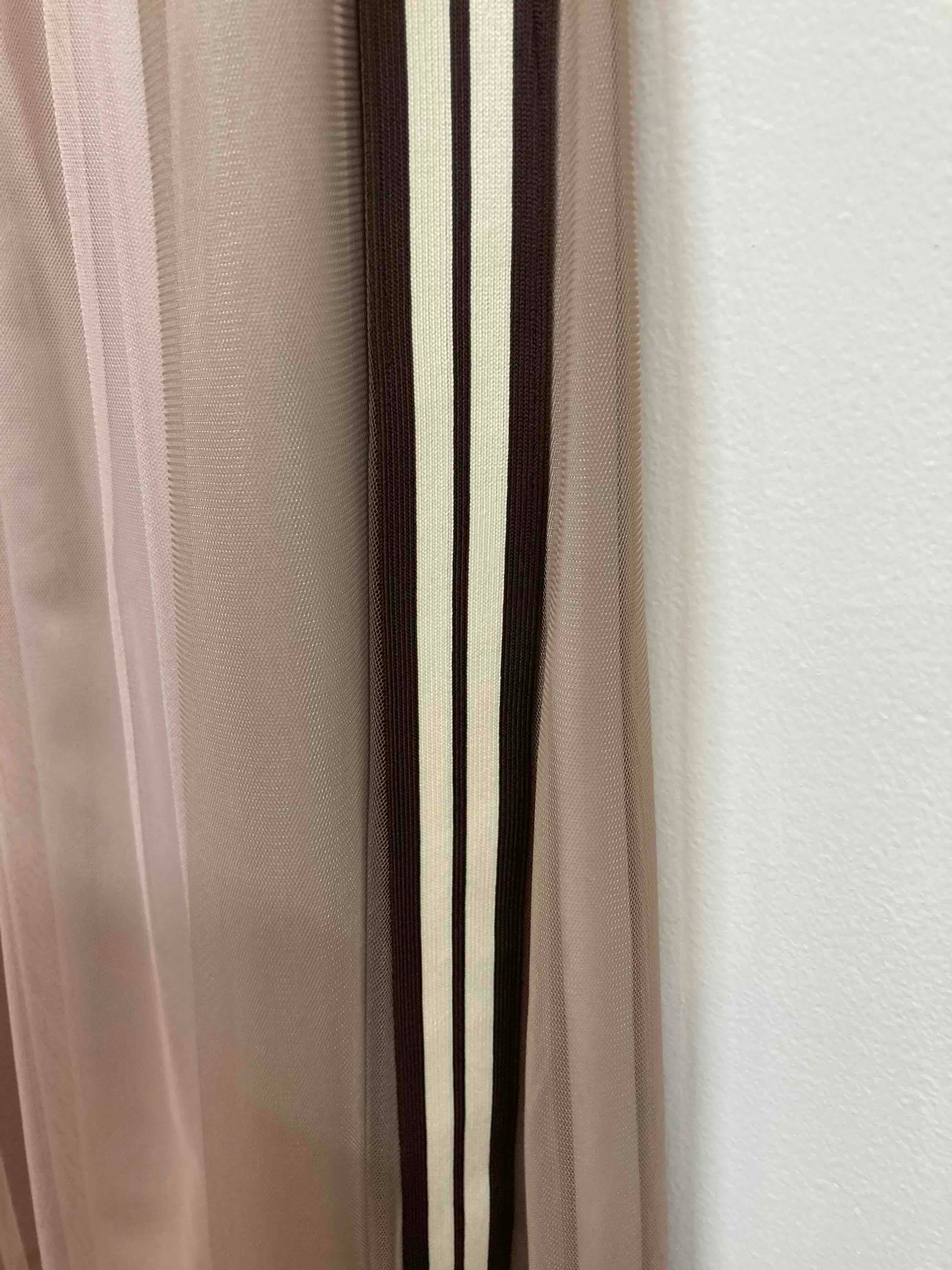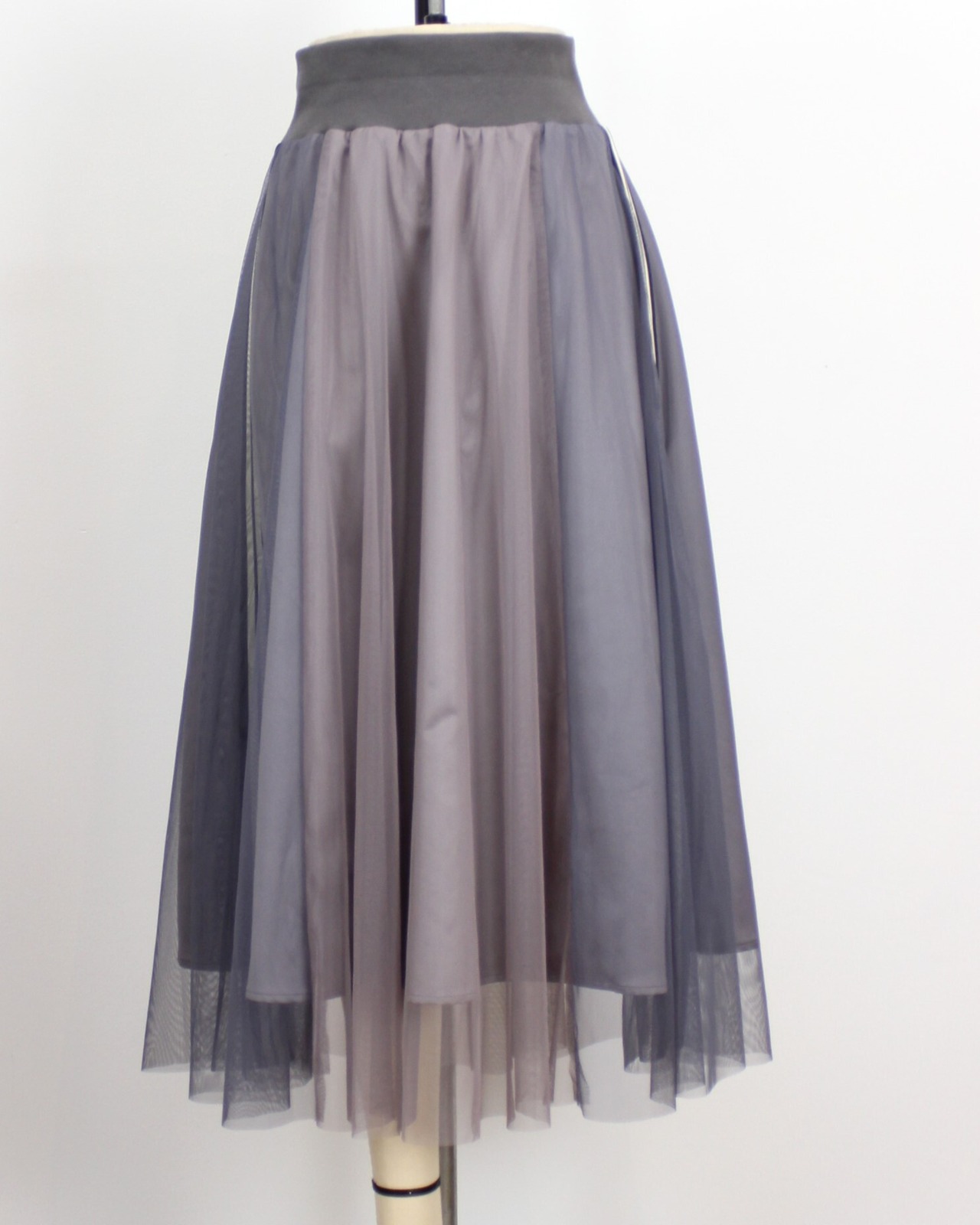 chez-voeu サイドラインチュールスカートは、軽やかなチュール素材とスポーティなサイドラインの組み合わせが魅力の一着です!エレガントな印象を与えつつ、カジュアルなスタイルにもマッチするデザインが特長です。
