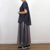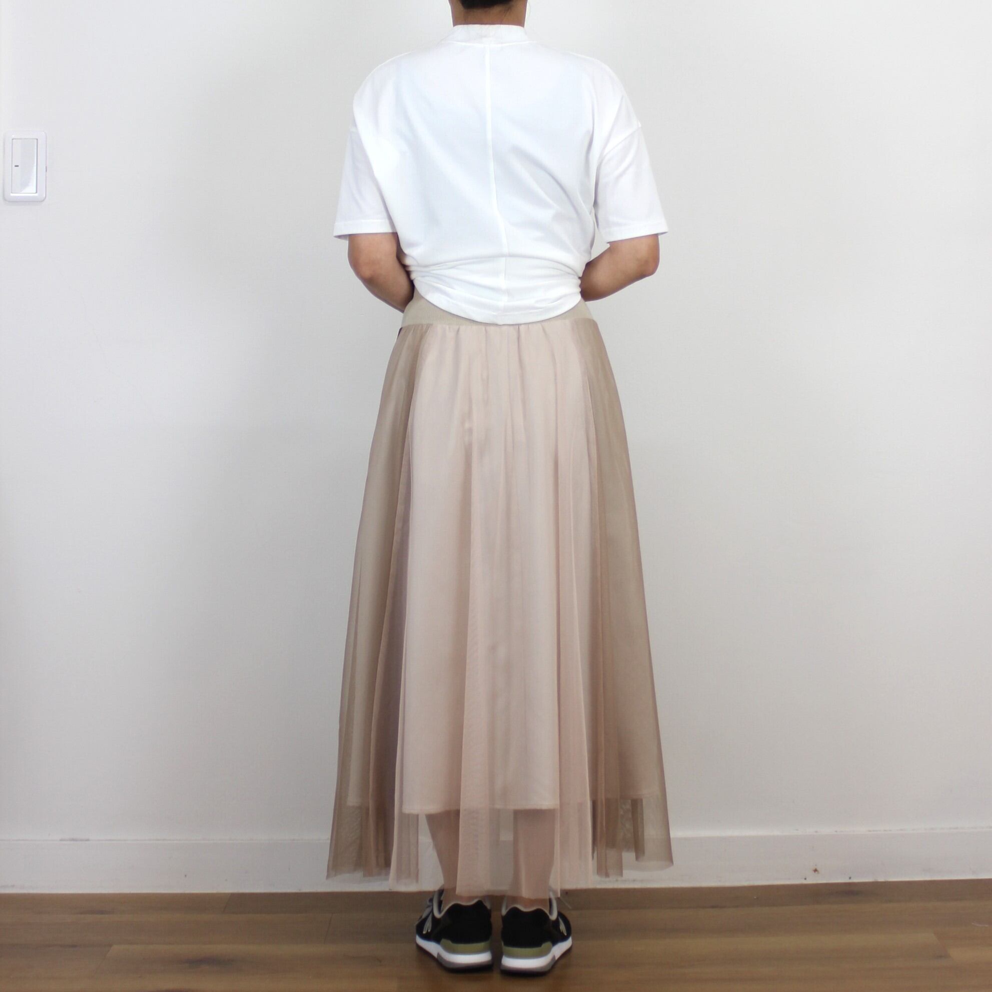 柔らかなチュールが軽やかに揺れ、歩くたびに華やかな雰囲気を演出します。ウエスト部分はゴム仕様で、楽な着心地を実現。多様なトップスとのコーディネートが可能で、Tシャツからブラウスまで幅広く対応します。このスカートで、ぜひ新たなコーディネートを楽しんでみてください!