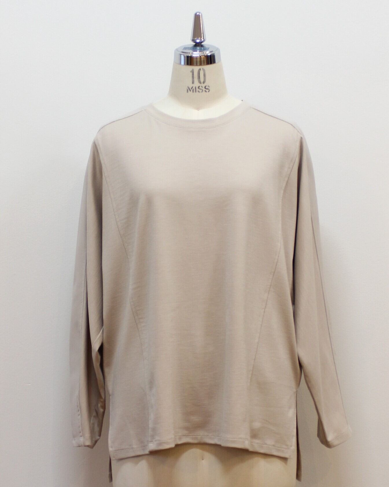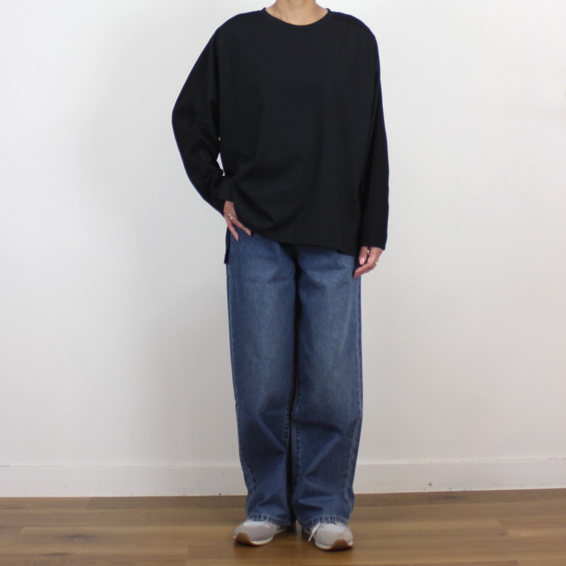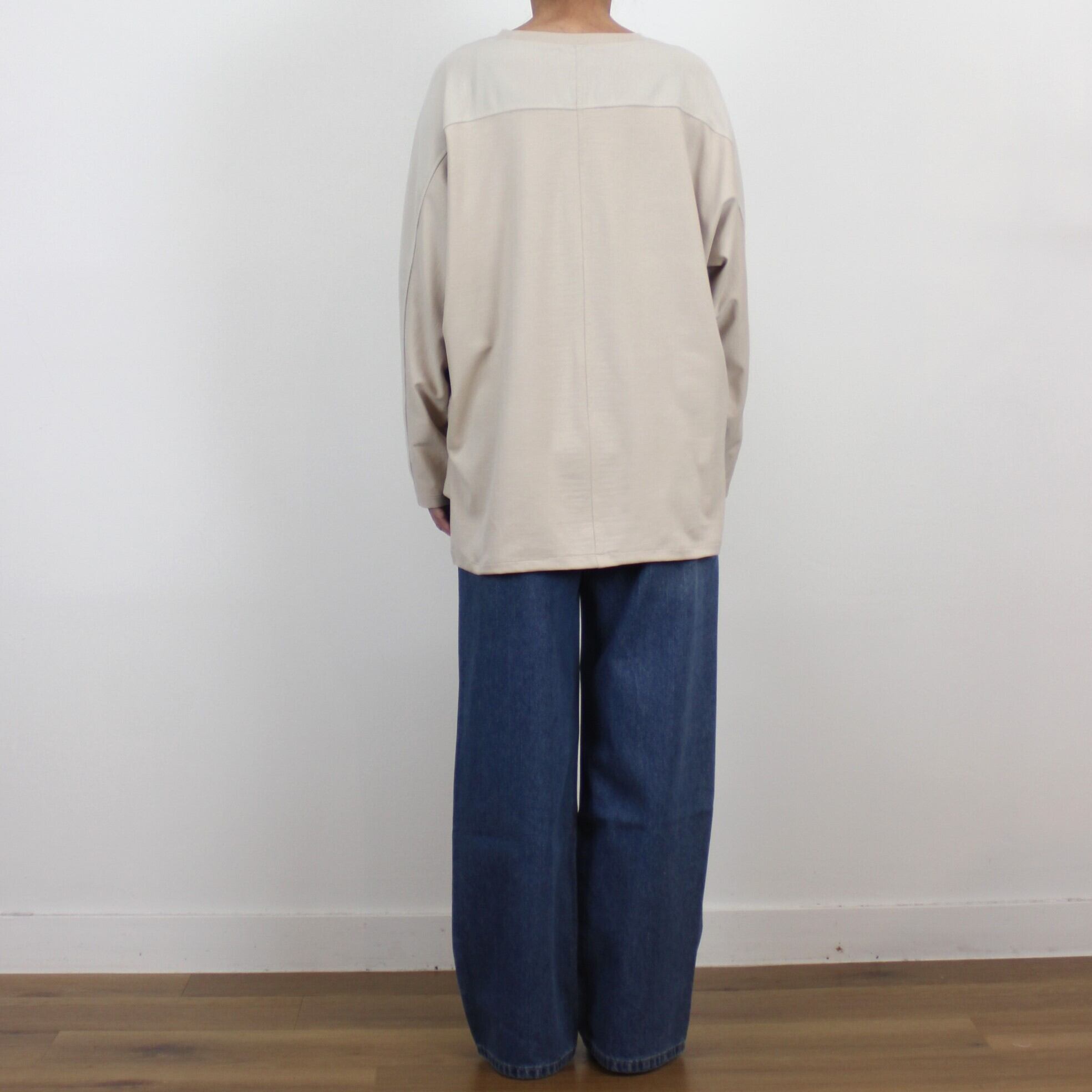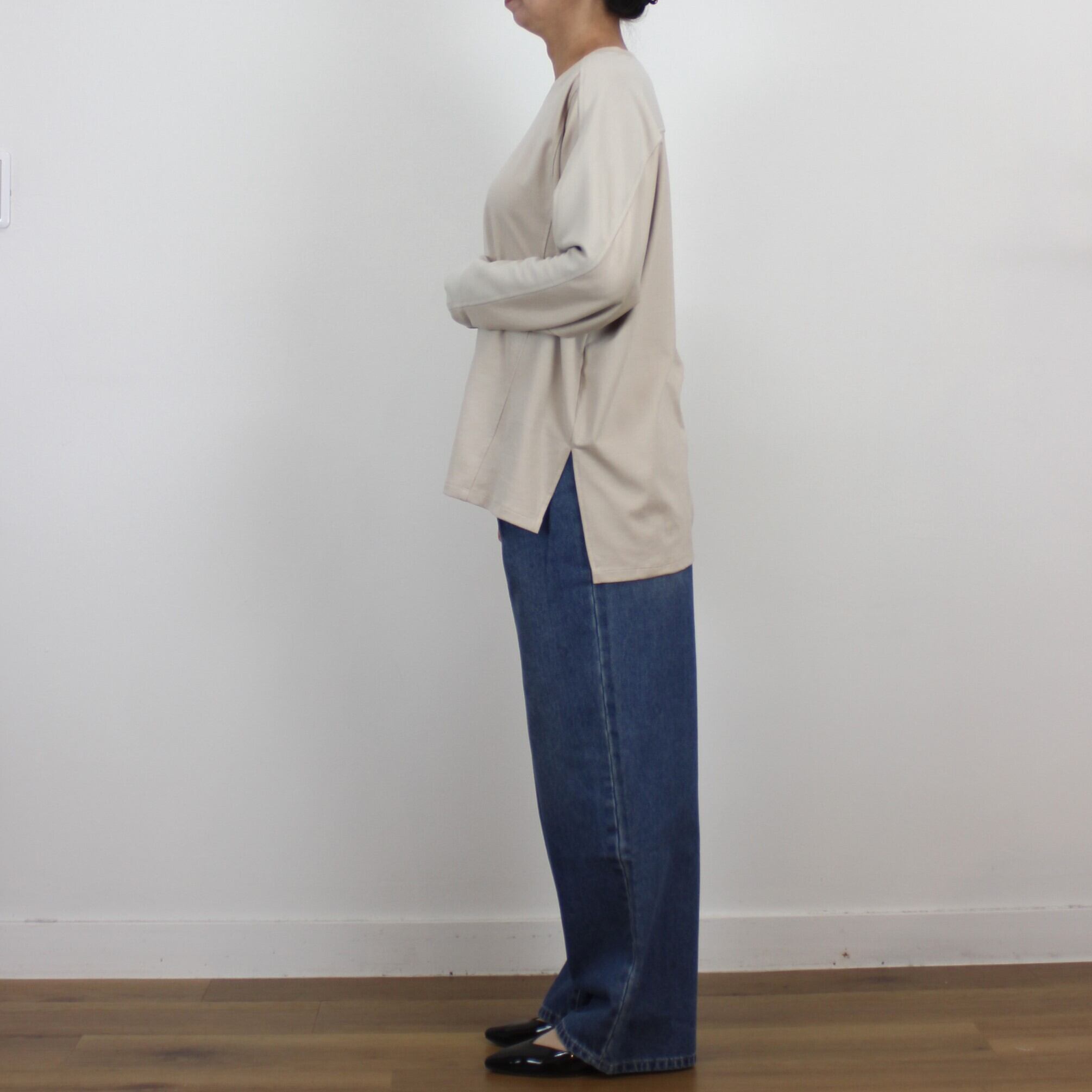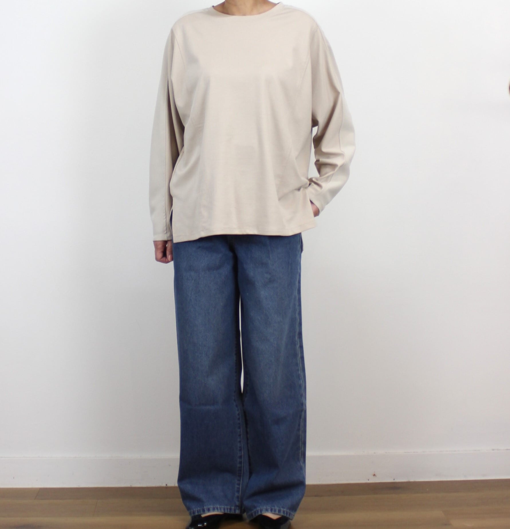 ドルマン型のデザインは、動きやすさを追求しつつ、適度なアイテムバランスを持たせています。カジュアルなデニムと合わせるだけでなく、スカートとのコーディネートでも幅広く活躍。デイリーコーディネートからカフェでのひとときまで、このプルオーバーで新たなスタイルを楽しんでみてください!